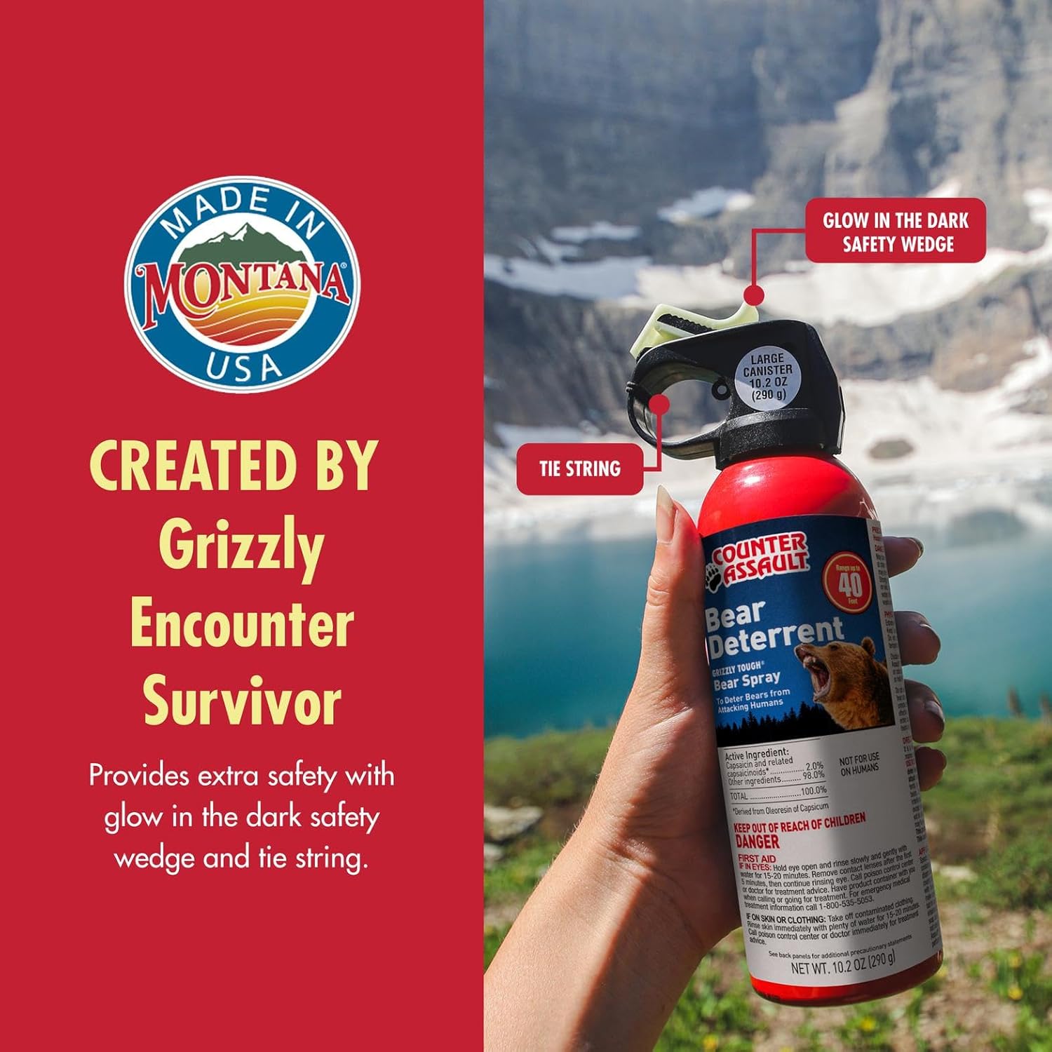 Embark on your backpacking adventures with the utmost confidence in bear country with Counter Assault's Bear Deterrent Spray. This essential survival gear is designed for those who roam the great outdoors, whether you're setting up a camping survival kit or gearing up for a hunting trip. Our bear spray is designed to deter grizzly, black, and brown bears, providing you with long-lasting bear protection with a high-volume blast of potent 2% capsaicin and related capsaicinoids. This bear-repellent spray gives you a versatile defense spray for all your outdoor needs. The 10.2 oz canister boasts a 40-foot spray range, ensuring maximum distance between you and a potential threat. It features an 8-second spray. Counter Assault is synonymous with reliable outdoor solutions, and this bear spray for hiking is no exception. Integrated into each canister is a glow-in-the-dark safety, an innovative feature for low-light encounters, ensuring your survival kit is prepared for any scenario. With a blend of power and practicality, this bear spray is a critical component for any outdoor enthusiast's arsenal, offering unparalleled bear protection without compromising on safety or environmental responsibility. Adventure Ready Brands headquarters is located in the heart of the White Mountains in Littleton, New Hampshire. We pride ourselves on building a strong and united team in order to achieve our vision: to enjoy the outdoors in every condition. Adventure Ready Brands is proud to support organizations for the betterment of trails and natural landscapes that so many of us enjoy.