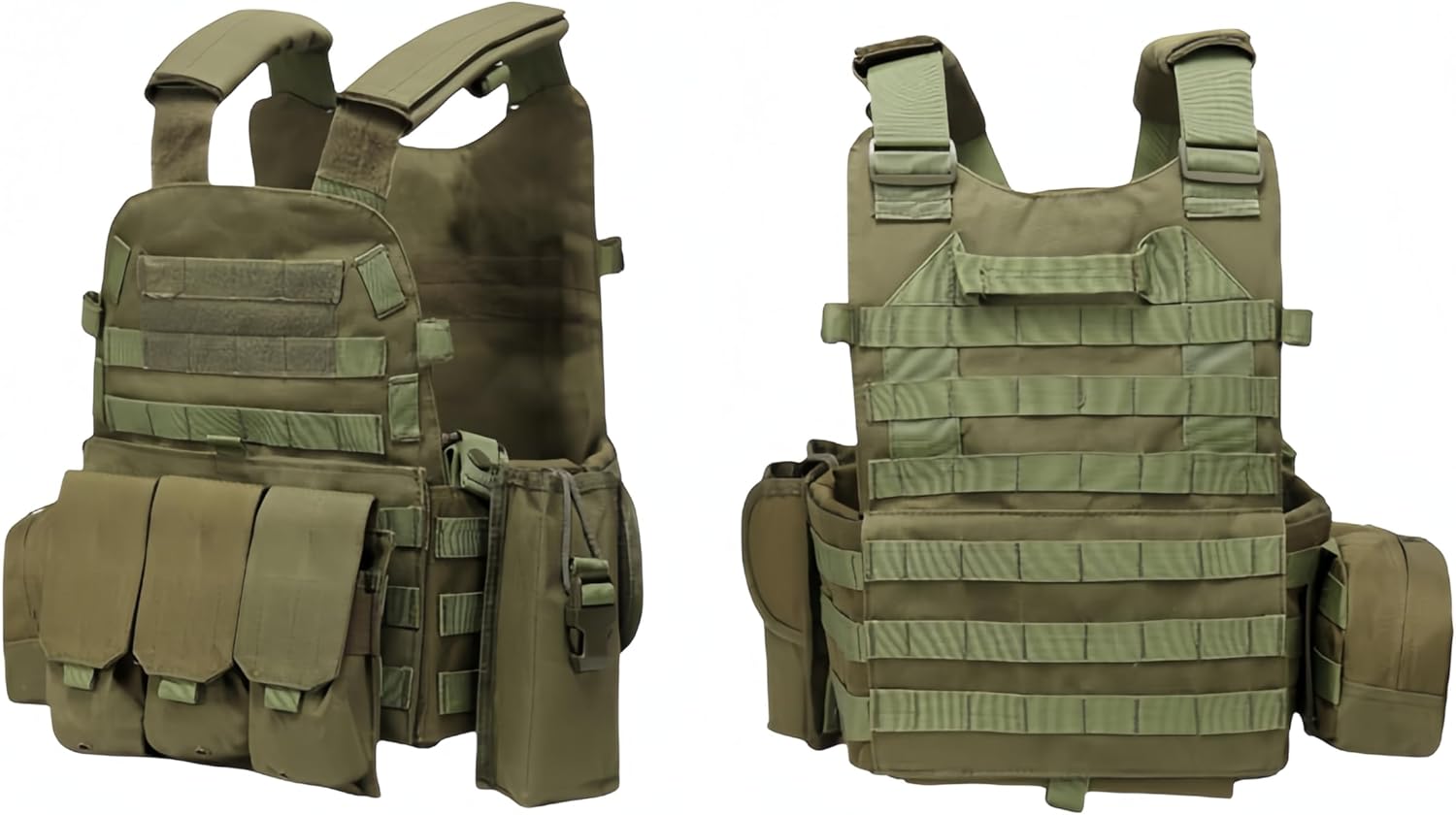 The tactical vest made of 800D Encrypted Polyester, Strong functionality, scratch resistance and durability.