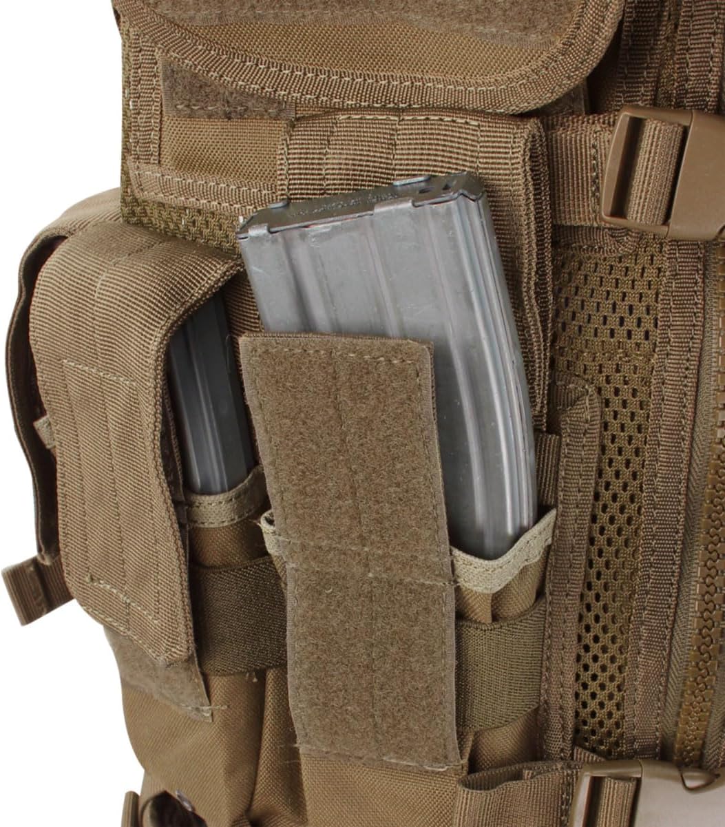 The Condor Crossdraw Vest is designed to perform in demanding conditions. It features three pistol magazine pouches, three rifle ammunition pouches, one utility pouch, and a modular holster compatible with most medium-frame pistols. The included Condor Belt comes with two horizontal utility pouches suitable for a pistol magazine, a folded knife, or a small flashlight.