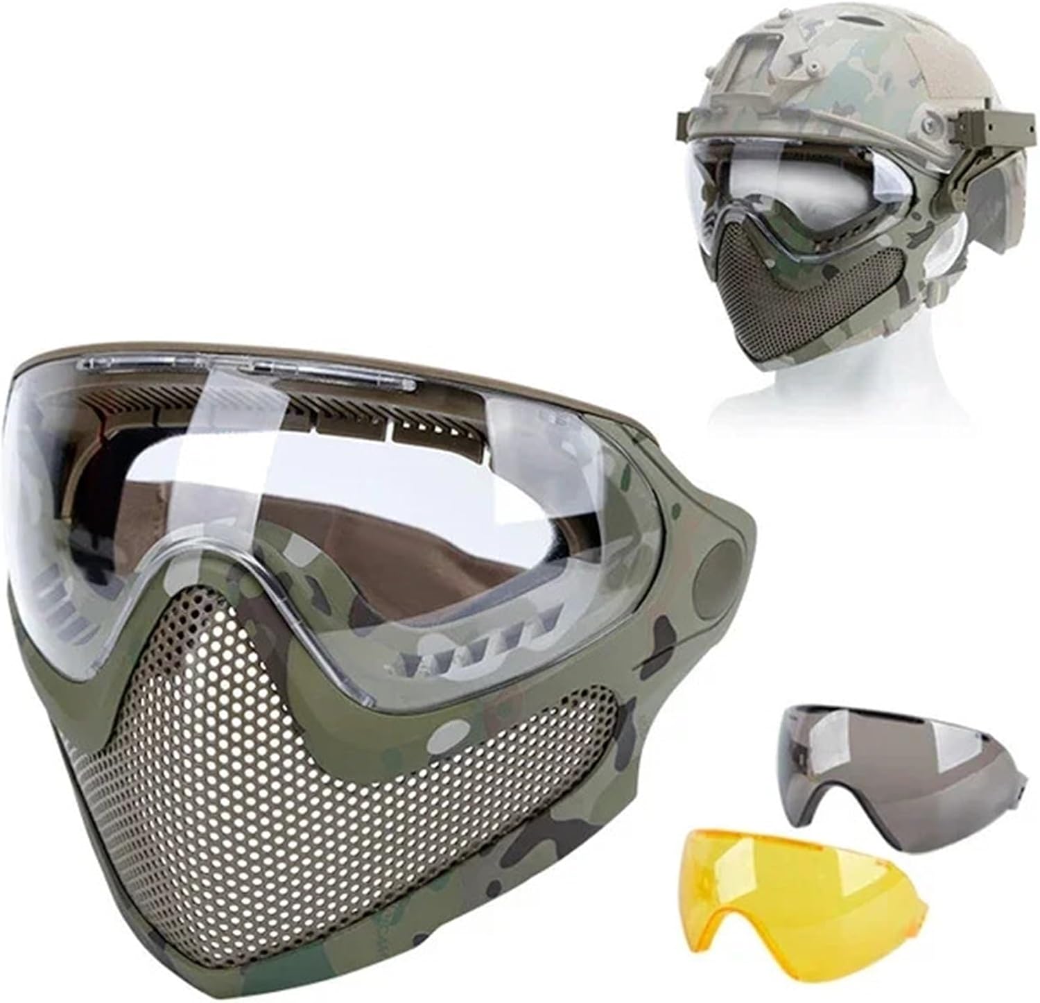 Tactical Full Face Mask Paintball Airsoft Cs Shooting Steel Mesh Breathable Protective Head/ Helmet Wearing Masks Hunting GearFeatures:3 lenses, which can be replaced at any time according to needs.The mask is made of TPU mask + PC lens. Anti-UV, windproof.Can be matched with a FAST helmet for better protection.Adjustable straps can be adjusted according to head circumference.Steel mesh design, breathable and comfortable.Product Specifications:Name: Tactical full face maskMaterial: The mask: TPU; Steel mesh: Nylon; Goggles: PC LensMask size: 21.5*17.5*14.5cmColors: black, green, Tan, cam, black cam, greyLens colors: black/ transparent/ yellowHead circumference: 52-64cm2 Modes: 1. Head wearing mode with Elastic head-band 2. Helmet wearing modePackage includes:1 * Tactical mask(without helmet)