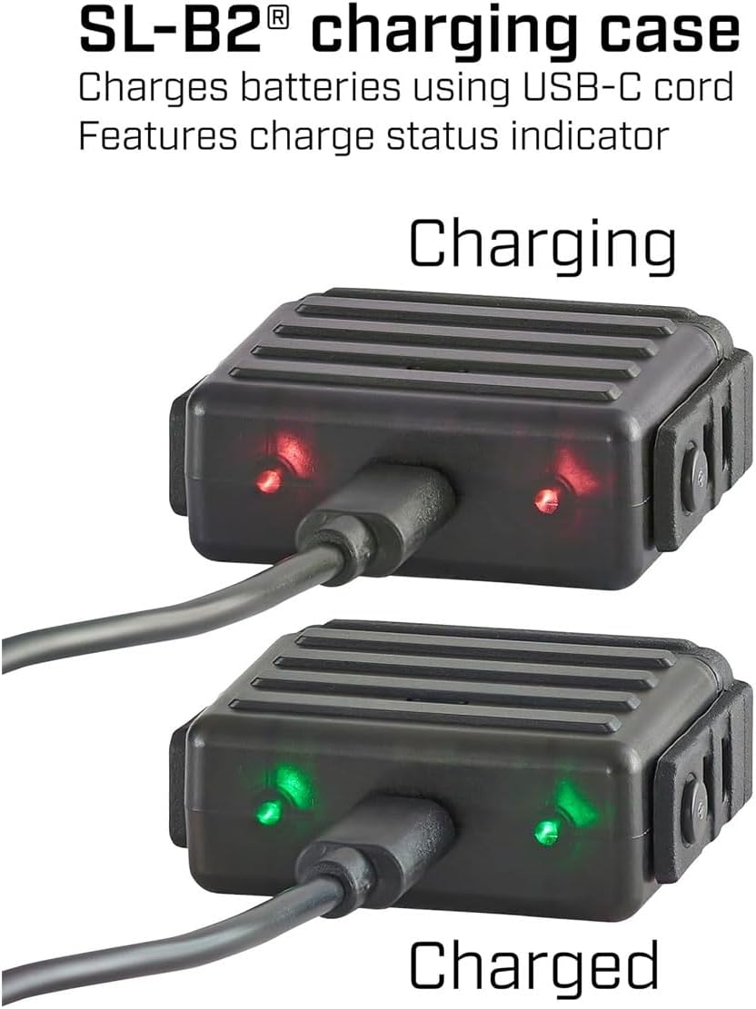 | Additional Features | High Power, Includes 2-bay charge case, USB-C cord, and three (3) batteries (enough for 1 hour of light/laser use), Lightweight, Mountable, Rechargeable |