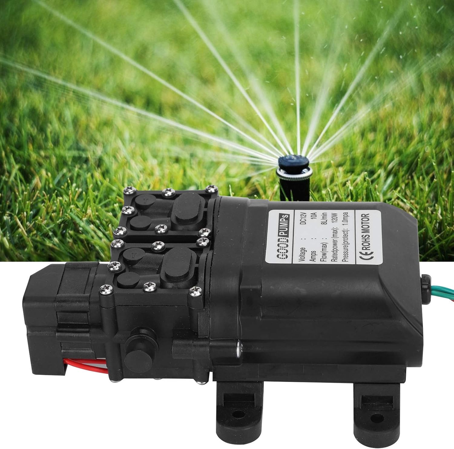 Specification:Item Type: PumpMaterial: Engineering PlasticsColor: BlackSize: Approx. 175x119x60mm / 6.89x4.69x2.36in Water Inlet Diameter: Approx.10mm / 0.39inOutlet Flat Thread Male Thread: 18mm / 0.71in, Copper Adapter Diameter: 10mm / 0.39inOutlet Protection Pressure: 9-12KGVoltage: DC12VCurrent: 10APower: 120WFlow Rate: 8L/MINWorking Pressure: 1.0mpaDrive Mode: ElectricPerformance: High pressureNumber of Impellers: MultistagePump Shaft Position: HorizontalImpeller Suction Method: Single suctionApplication: Agricultural sprayWeight: Approx.1154g/40.7ozPackage List:1 x Pump4 x Accessories