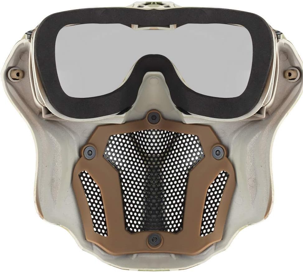 Interchangeable lens, come with a clear and a tinted (smoked) lens Size: total width 24cm and total height 20cm Goggles lens withstand 310 FPS before scrating, and stell mesh mask and withstand max 600 FPS Works great with FAST helmet How to turn on the fan? 1.Put two AAA battery into the battery case 2.There is a button on the bottom of the battery pack, first press the button to turn on the fan for ventilation, second press the button to Increase wind and third to turn off the fan.