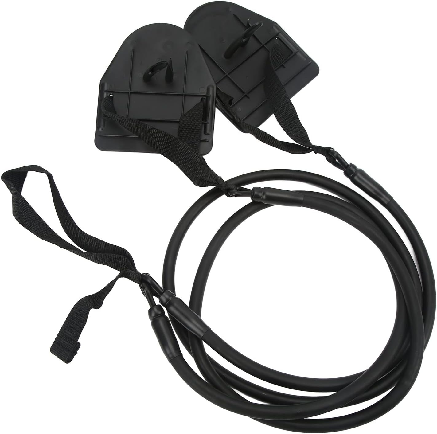 [PREMIUM MATERIAL] Made of high-quality latex, these elastic bands are durable, flexible, and provide high tension for an effective workout.[ERGONOMIC DESIGN] The hand paddle fits comfortably in your palm, offering sturdy and wear-resistant support for a comfortable swimming experience.[WEAR RESISTANT] The premium strap is durable, wear-resistant, and collapse-resistant, making it a reliable training tool for swimmers.[CONVENIENT CLIP DESIGN] The arm strength trainer can be easily fixed on doors for safe and non-slip indoor and outdoor training sessions.[MULTILAYER REINFORCEMENT] The seams have been reinforced to increase tensile strength, ensuring long-lasting use and safety during workouts.Spec:Item Type: Swimming Arm Strength TrainerMaterial: Latex Weight: Approx. 435g/15.34oz Color: Black Size: Latex Tube: Approx. 4x12mm/0.16x0.47in Package List:1 x Swimming Arm Strength Trainer1 x Storage Net Bag Note: