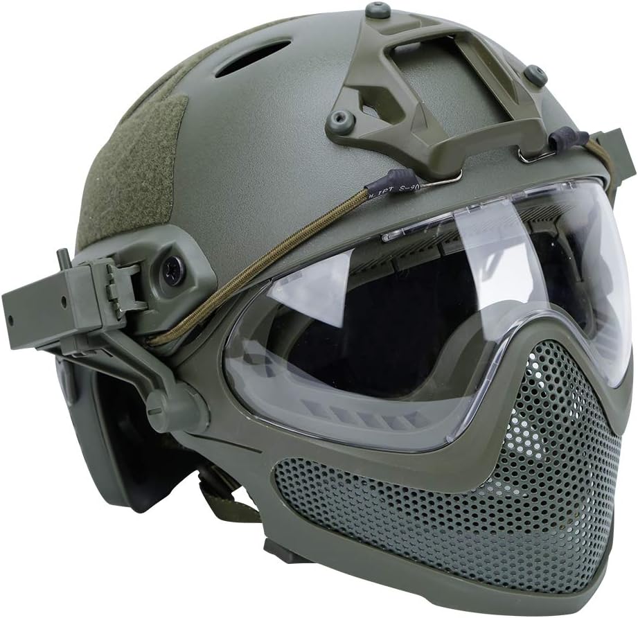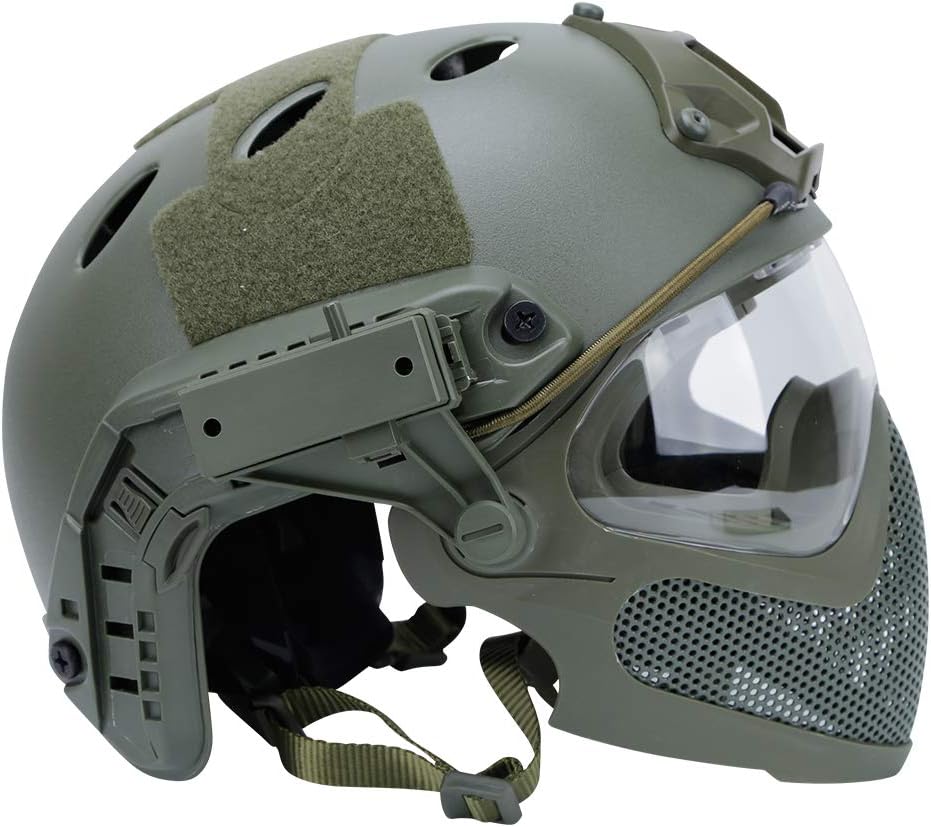 Weight: 900 grams, light and easy to carry, can be used for a long time. Provides head and face protection against incoming bb It is fully adjustable from the size of the headband to the height of the helmet, and is equipped with a rear dial design to adjust the tightness Soft padded interior, comfortable to wear, can effectively prevent bumps and impacts Near the helmet frame, there are a large number of ventilation holes, which can form a large amount of air circulation during the user's exercise, so as to achieve the effect of heat dissipation and improve the comfort of the user. Tactical helmet + breathable mask + anti-fog goggles Helmet-ABS engineering plastic Mask-Thermoplastic Polyurethane (TPU) Lens-Polycarbonate Plastic (PC)