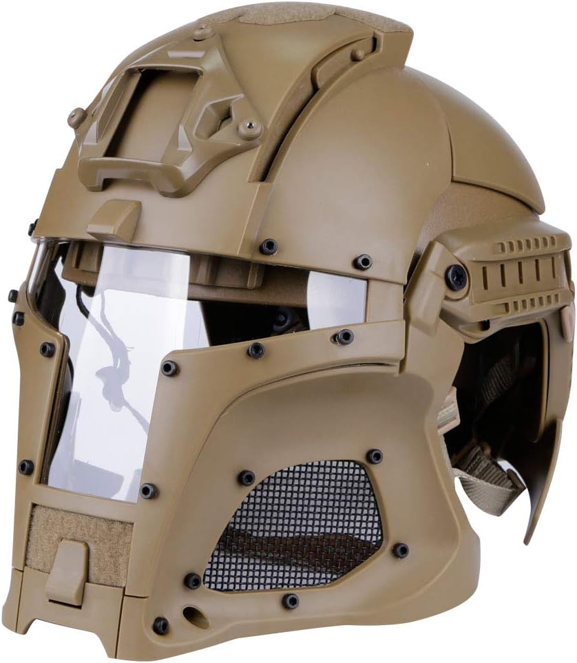 Package weight: 1.5kg (3.31lb.) Type: Full face tactical helmet Material: composite material Head circumference: 54-64 cm Product size: 30x22cm With NVG mounting base and rail side Spring action with pop-up sun visor Mask can be opened and closed to change lenses Metal mesh inspection design keeps you ventilated Applicable scene: various outdoor activities Suitable for: military tactical shooting, shooting, CS, paintball shooting Packaging: helmet, PC lens and steel mesh lens, pad cover,