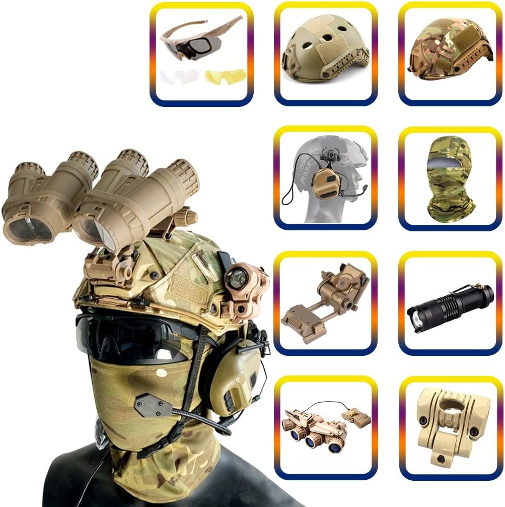 [Product Attributes]-Item: FAST four-hole night vision helmet set-Helmet material: ABS plastic-Features: Light weight, shock absorption-Comfortable ventilation holes, strong adhesive Velcro- Adjustable size: comfortable to wear. Suitable for head circumference 52-60 cm.-Applicable range: safety and defense, tactical sports, military fans collection, etc.-Ergonomic headband-Helmet components include:A: FAST helmet, helmet cloth, headgearB: FAST helmet, helmet cloth, headgear, large flashlight clip + flashlightC: FAST helmet, helmet cloth, headgear, large flashlight clip + flashlight, goggles (3 pieces)D: FAST helmet, helmet cloth, headgear, large flashlight clip + flashlight, goggles (3 lenses), tactical headsetE: FAST helmet, helmet cloth, headgear, large flashlight clip + flashlight, goggles (3 lenses), tactical headset, L4G24 dump truck, four-tube night vision modelF: FAST helmet, helmet cloth, headgear, large flashlight clip + flashlight, goggles (3 lenses), tactical headset, dump truck, two-tube night vision device modelG: FAST helmet, helmet cloth, headgear, large flashlight clip + flashlight, tactical headset, L4G24 dump truck, four-tube night vision model, mask wind goggles