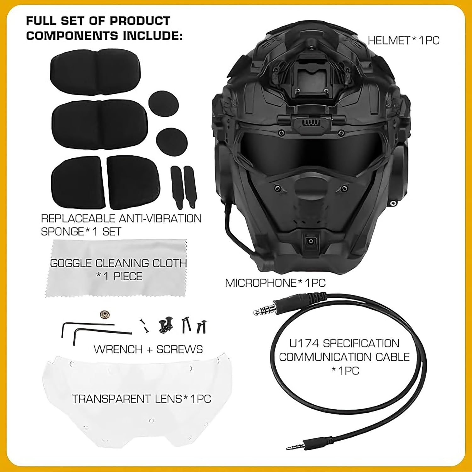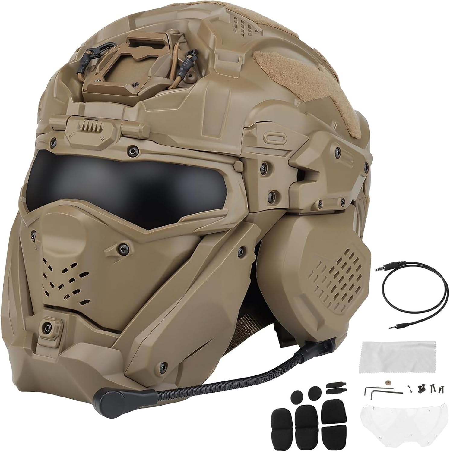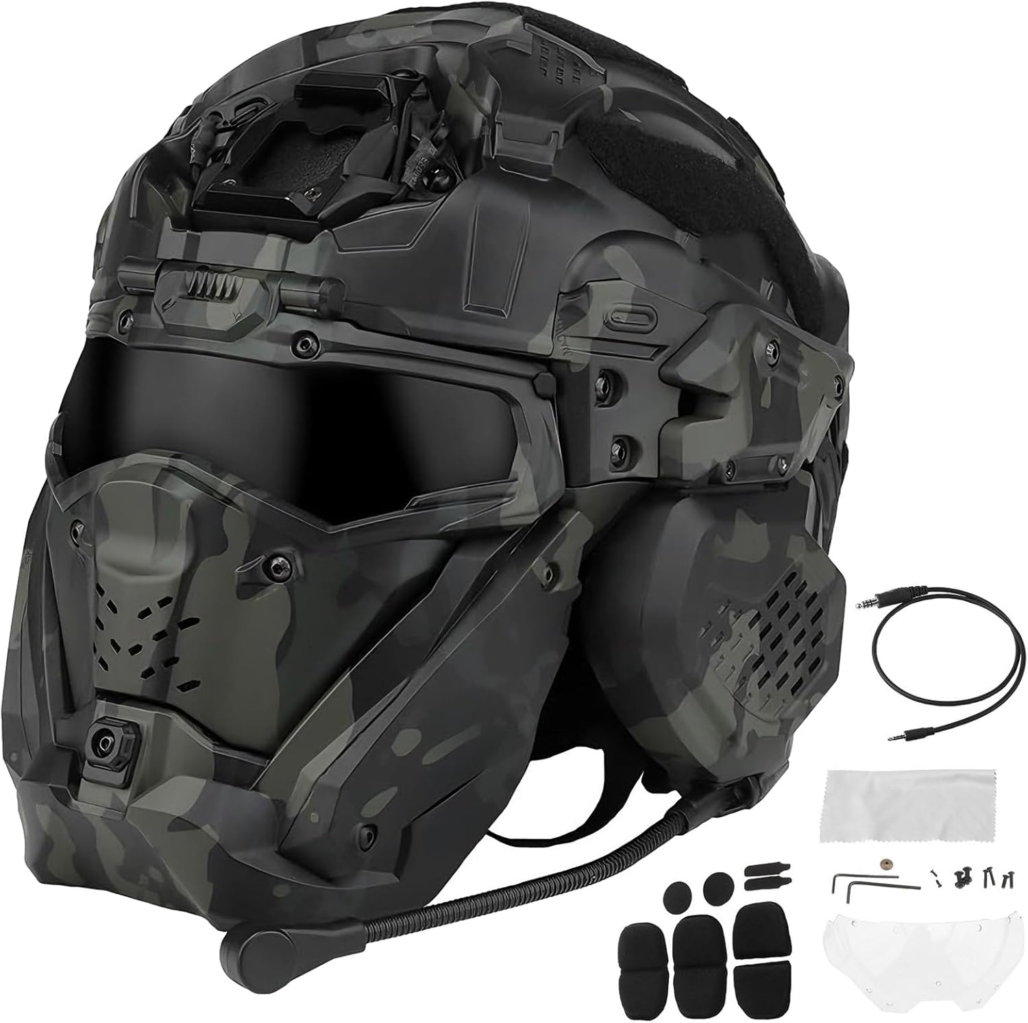 Looking for hardcore tactical protective gear? Seeking the convenience of an integrated head and face shield with integrated audio? Need DIY tactical configurations adaptable to various scenarios? This high-end tactical helmet kit combines head and face protection, a high-definition tactical headset, an anti-fog fan, and an NVG mounting plate into one unit. Made of ABS and nylon, it fits head circumferences of 54-64cm and features a modular design that supports flexible DIY tactical setups.Stop settling for helmets that hold you back. Choose the one that’s built for your pain points, your mission, and your trust.We have a dedicated customer service and technical team to respond to your product inquiries and usage questions at any time, ensuring your equipment is always in optimal condition.