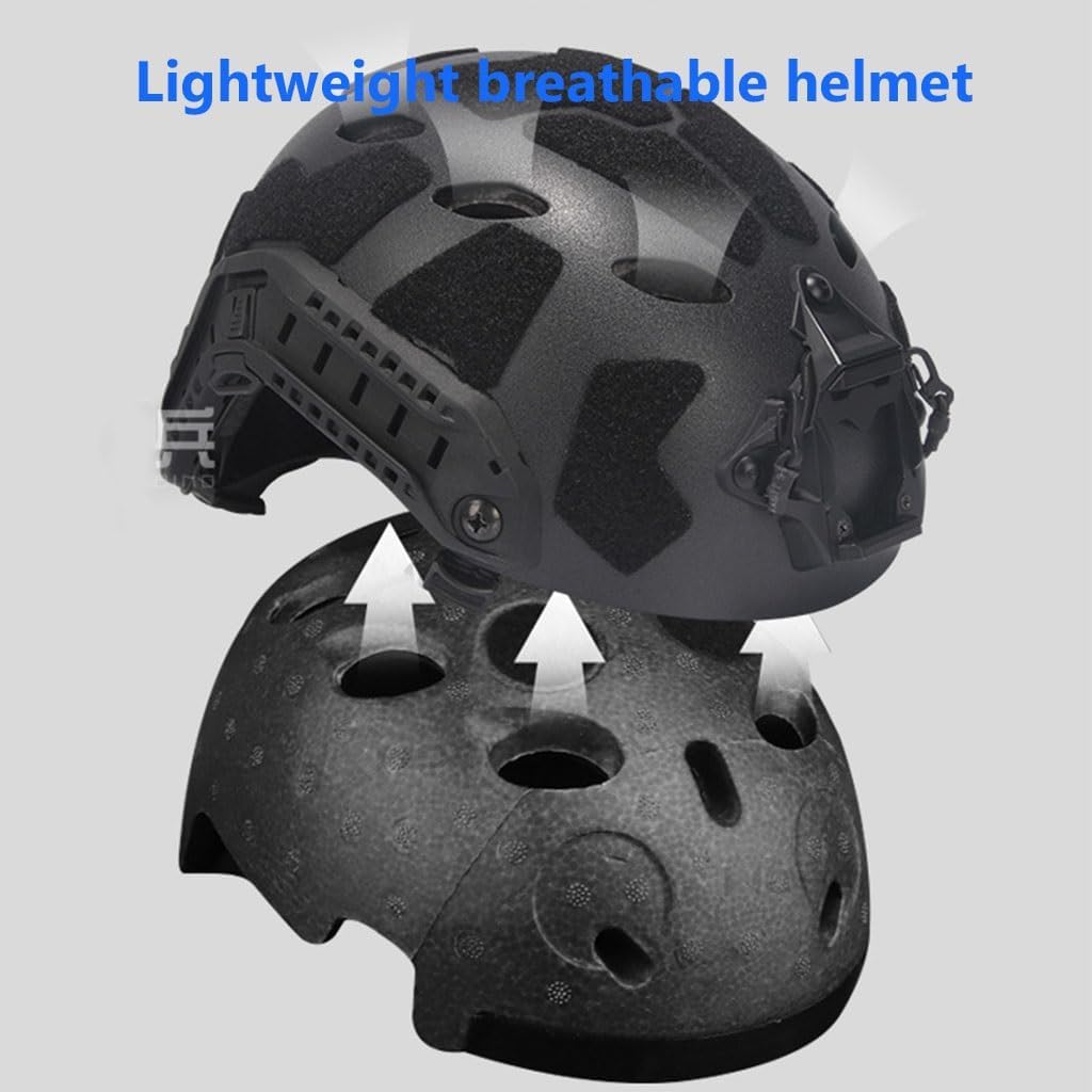 Perfect helmet suit combination; It can provide protection for users in the indoor/MOUT/CQB environment, and can also prevent BB hit in the case of medium to extreme proximity. It is applicable to all kinds of outdoor activities: real person CS, air gun, paintball, hunting, and can also be used separately according to your own needsHigh quality material: ABS engineering plastic+EPS anti-seismic foam plastic+nylonMask material: composed of TPE (thermoplastic elastomer) and some steel mesh, with impact resistance of at least 700 FPS, comfortable cushion, adjustable, light weight, breathable2 modes: 1. Personal goggles (with elastic headband) 2. Connected to helmet (with 2 fixing buckles and 2 guide rails)Including:1 * fast helmet1 * Airsoft mask1 * Tactical goggles100% customer satisfaction guarantee: If you have any questions, please feel free to contact us, and we will immediately correct the situation or provide a refund/exchange. Welcome to purchase