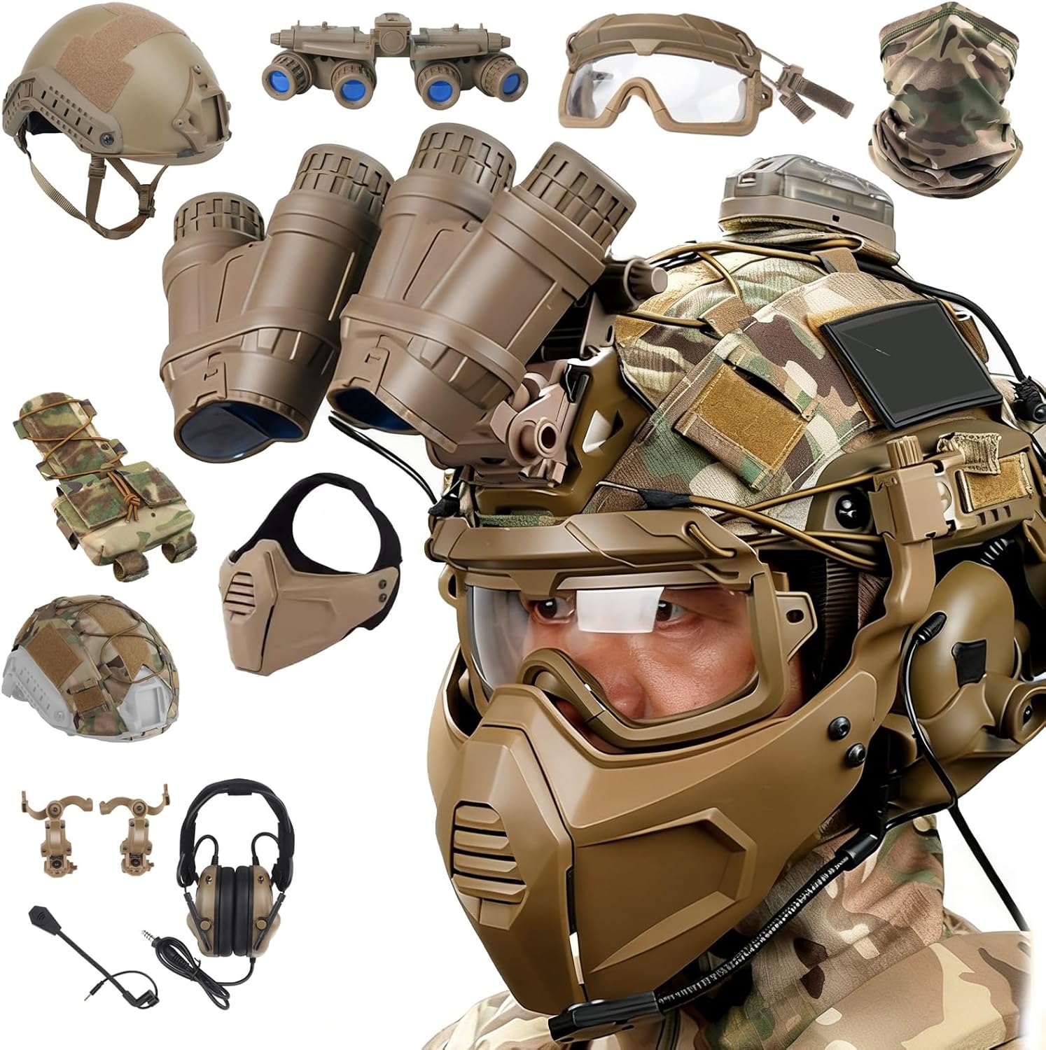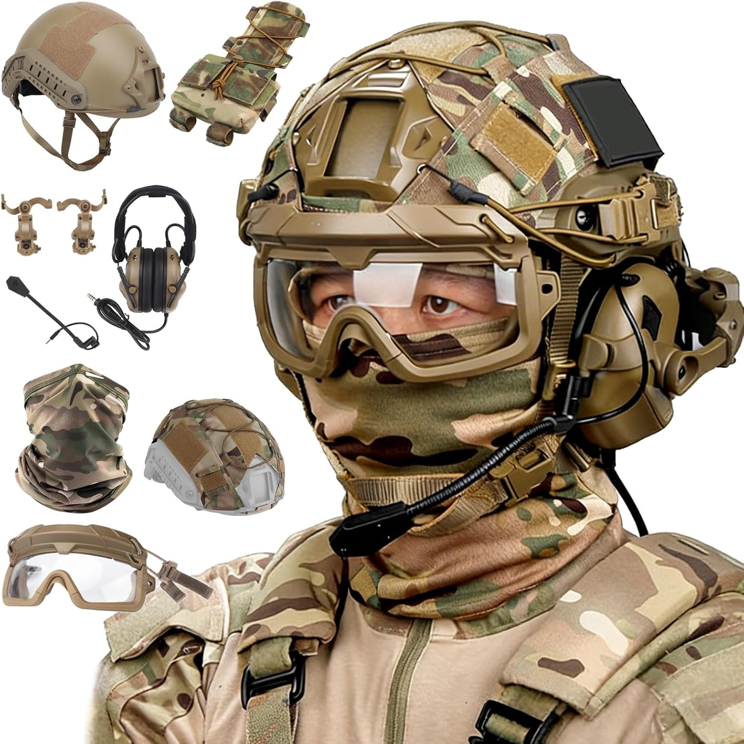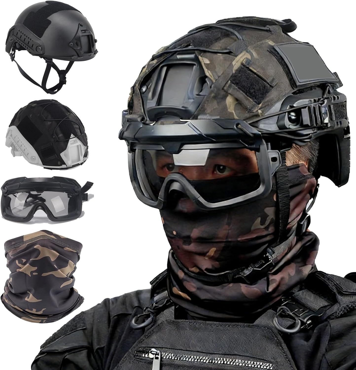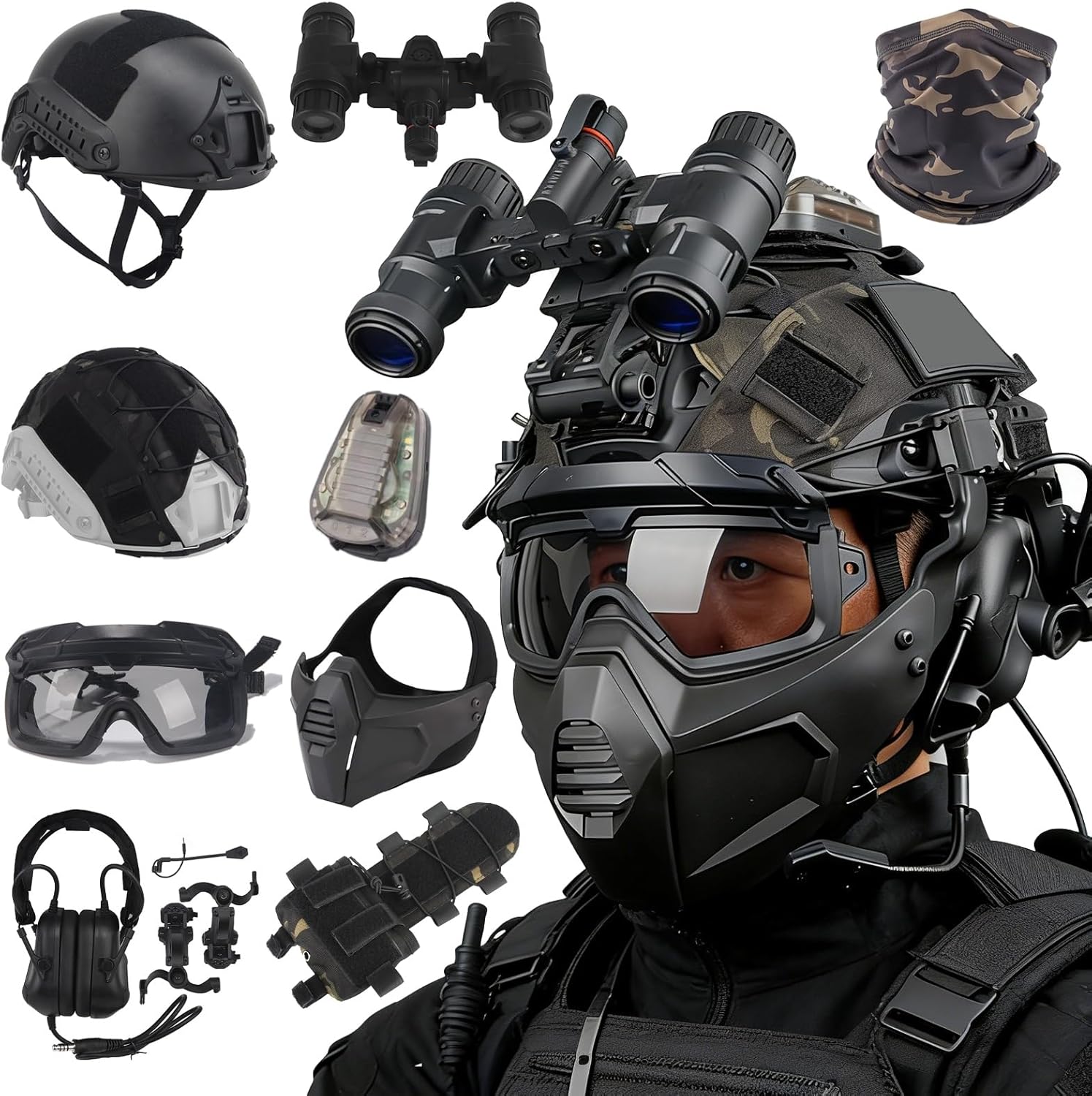Looking for a tactical helmet set that combines comfort, protection, and standout style? Want a helmet that fits securely, reduces noise, and supports accessory mounting? Need versatile gear for airsoft, cosplay, and outdoor activities? This professional FAST helmet set delivers a secure adjustable fit, durable ABS protection, comfortable noise-reducing headphones, a realistic NVG dummy, and a stabilized helmet cover—making it an ideal all-in-one solution for tactical games, cosplay events, and outdoor adventures.Set A: Fast helmet *1, Ice silk face mask*1Set B: Fast helmet *1, Ice silk face mask*1, Helmet cover*1Set C: Fast helmet *1, Ice silk face mask*1, Helmet cover*1, Goggles*1Set D: Fast helmet *1, Ice silk face mask*1, Helmet cover*1, Goggles*1, Battery Pouch *1, Half face mask*1Set E: Fast helmet *1, Ice silk face mask*1, Helmet cover*1, Goggles*1, Battery Pouch *1, Headset*1Set F: Fast helmet *1, Ice silk face mask*1, Helmet cover*1, Goggles*1, Battery Pouch *1, Half face mask*1,Headset*1Set G: Fast helmet *1, Ice silk face mask*1, Helmet cover*1, Goggles*1, Battery Pouch *1, Half face mask*1,Headset*1,Signal light*1Set H: Fast helmet *1, Ice silk face mask*1, Helmet cover*1, Goggles*1, Battery Pouch *1, Half face mask*1,Headset*1,Signal light*1,2-eye NVG model*1,NVG mount*1Set I: Fast helmet *1, Ice silk face mask*1, Helmet cover*1, Goggles*1, Battery Pouch *1, Half face mask*1,Headset*1,Signal light*1,4-eye NVG model*1,NVG mount*1Stop settling for helmets that hold you back. Choose the one that’s built for your pain points, your mission, and your trust.We have a dedicated customer service and technical team to respond to your product inquiries and usage questions at any time, ensuring your equipment is always in optimal condition.