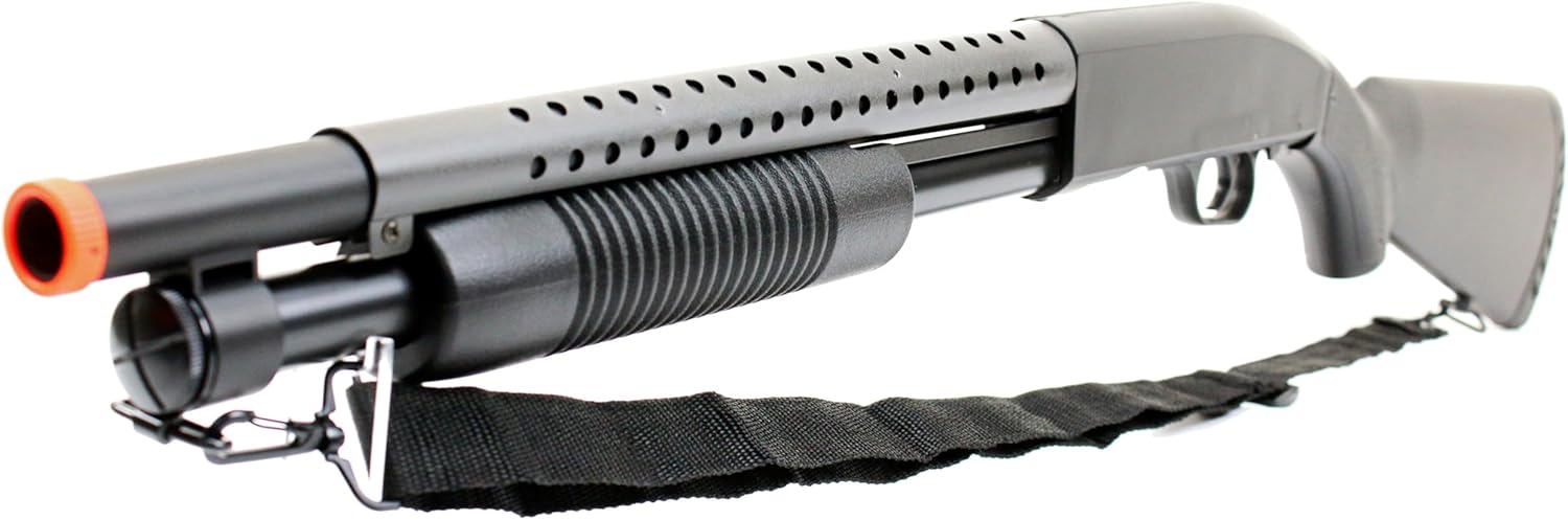 Experience the thrilling realism of close-quarters combat with this durable, full-size pump-action airsoft shotgun. Engineered for both new enthusiasts and experienced players needing a reliable secondary or primary weapon, this model delivers an authentic heavy-duty feel and solid performance in any skirmish. The core of this shotgun’s appeal is its authentic pump-action realism. Featuring a robust heavy barrel and a single-pump shot design, it provides a satisfying, lifelike handling experience with a noticeable weight balance and smooth, quick cycling. This makes it an ideal choice for CQB (Close Quarters Battle) scenarios where speed and maneuverability are key, or simply for precise backyard target practice. Built to withstand demanding field use, this shotgun features rugged construction with a metal heat sink build and reinforced internal parts. This superior strength ensures exceptional longevity and reliable performance through extended play sessions, offering maximum durability that you can count on when it matters most. Precision is paramount, and this shotgun makes accuracy adjustments effortless with its innovative on-frame adjustable Hop-Up system. This quick-access control switch allows you to fine-tune BB flight path in seconds, without needing extra tools or downtime. Customize your shot for better range and consistency, giving you a competitive edge. Whether you're looking for a powerful entry-level shotgun that’s easy to operate or a dependable backup airsoft gun to complement your main setup, this model is perfectly suited. Its field-ready tactical design and dependable operation provide the confidence and reliable performance needed for every skirmish, training drill, or recreational game. Get a realistic feel, superior durability, and precise control all in one versatile airsoft package.
