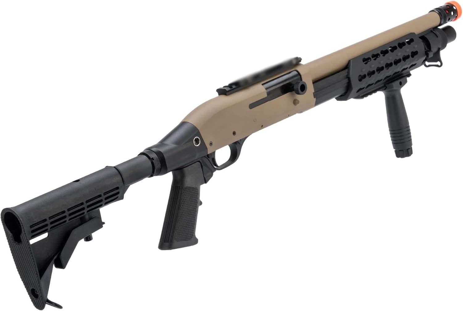 Redesigned from the Tokyo Marui M3 shotgun, the CYMA M3 is built to shoot harder for the performance driven American market! CYMA set out to capture this iconic shotgun in the form of a reinforced, reliable, powerful, and accurate Airsoft version. There is no reinventing the wheel here, the CYMA M3 series uses the tried and true tri-shot design but with beefier and more durable internals and the fine exterior appearance that CYMA is known for. Airsofters have been asking for it and CYMA has delivered, a skirmish grade tri-shot M3 Airsoft shotgun with a very attractive price tag. The CYMA 3-round burst shotgun is perfect for those looking for manual backup weapon. Remember to pick up some spare Airsoft shotshells along with it! Length: 825mm - 905mm, Adjustable Weight: 6.5lbs Mag Capacity: 30rds per Airsoft Shell Muzzle Velocity: 280~306 FPS (Measured with 0.20g BBs) Fire Modes: 3-Round Burst, Safety System: High Power Spring Package Includes: Gun, Mag, 3x Airsoft Shell, Vertical Handle Hopup: Yes, Fixed