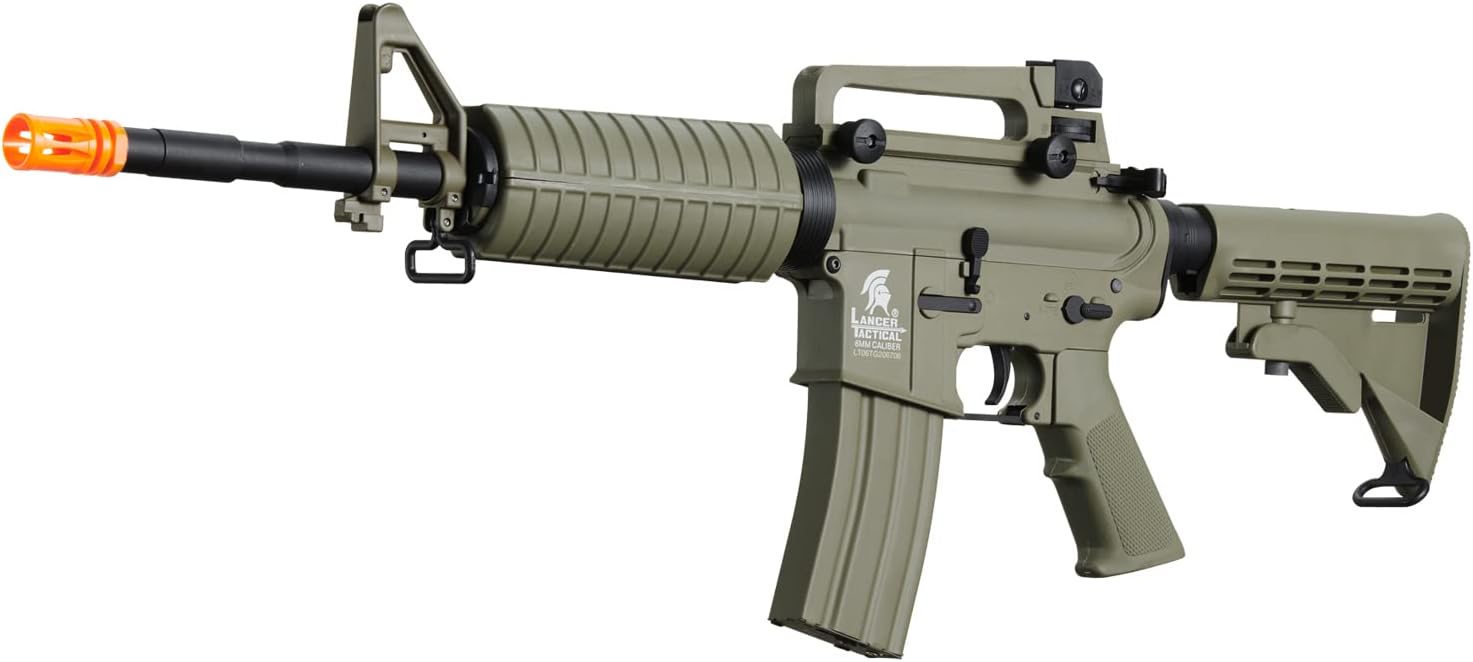 Specifications:Operation: Electric AutomaticBuild: Metal Gearbox, Outer Barrel / Nylon Polymer Receiver, Rail System, Stock, Carry Handle, Motor Grip, SightsFiring Modes: Semi-automatic, Full-automatic, w/ Functional SafetyMuzzle Velocity: 370-395 FPS (w/ 0.20g BBs)Gearbox: Full Metal Version 2Magazine: 300rd High Capacity (gear wind-up)Battery: 9.6v NunchuckInner Barrel Length: 363 mmInner Barrel Diameter: 6.03 mmHop-Up: AdjustableOverall Length: 31" in. / 34.5" in. (Retracted / Extended)