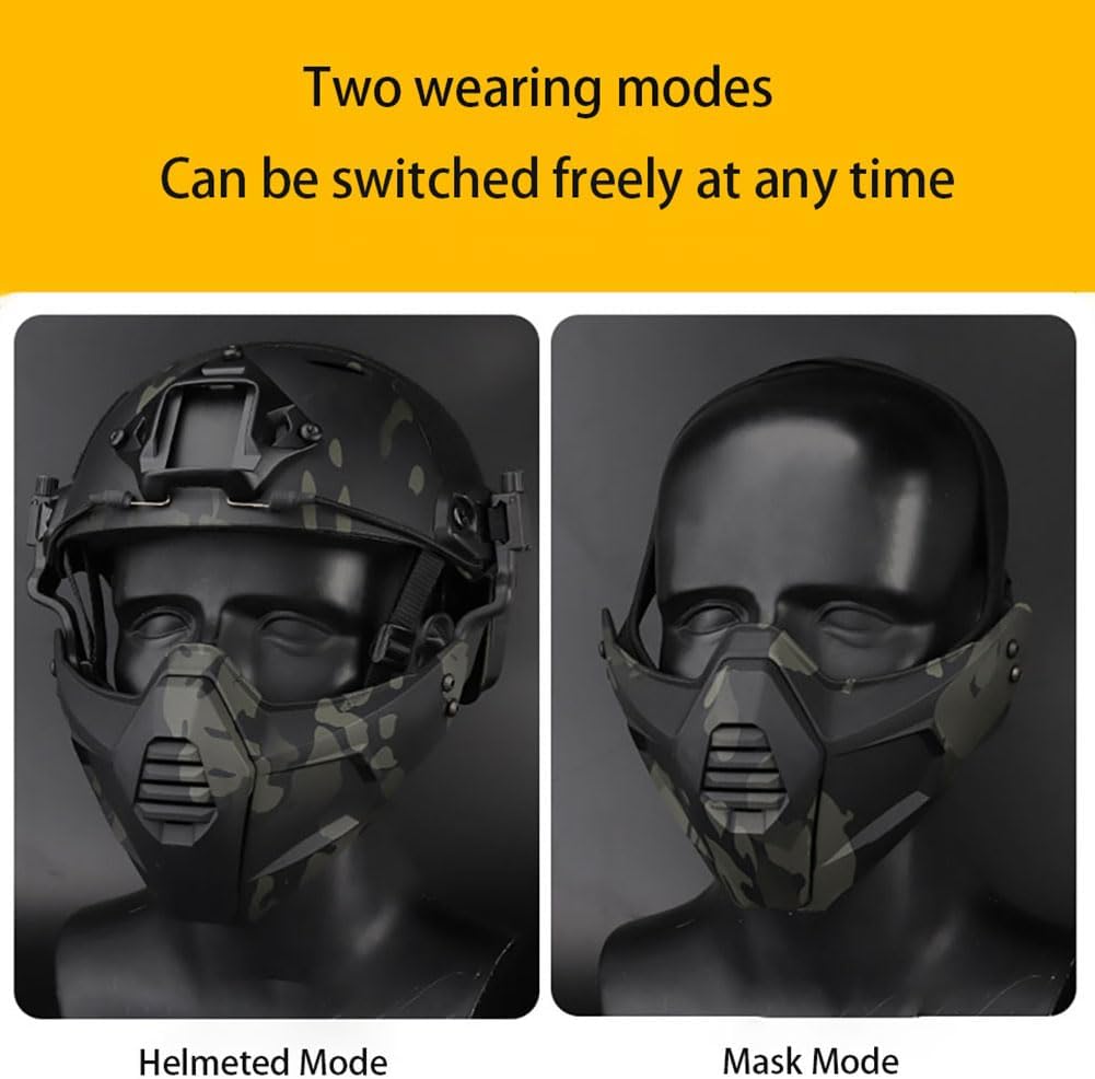 Product Features: 1.High-quality materials, sturdy and durable. 2.The mask is soft and elastic, comfortable to wear, breathable, light weight, easy to wear without pressure. 3.Multiple ways of use, can be used with tactical helmets, headphones and other equipment, can also be worn alone. Cautions: 1.Please do not disassemble, private disassembly may cause irreversible damage to the product, can not be restored to use! 2.Daily storage: When not in use, please keep the product in a cool place away from light and avoid exposure to the sun. 3.If you have any questions, please do not hesitate to contact us!