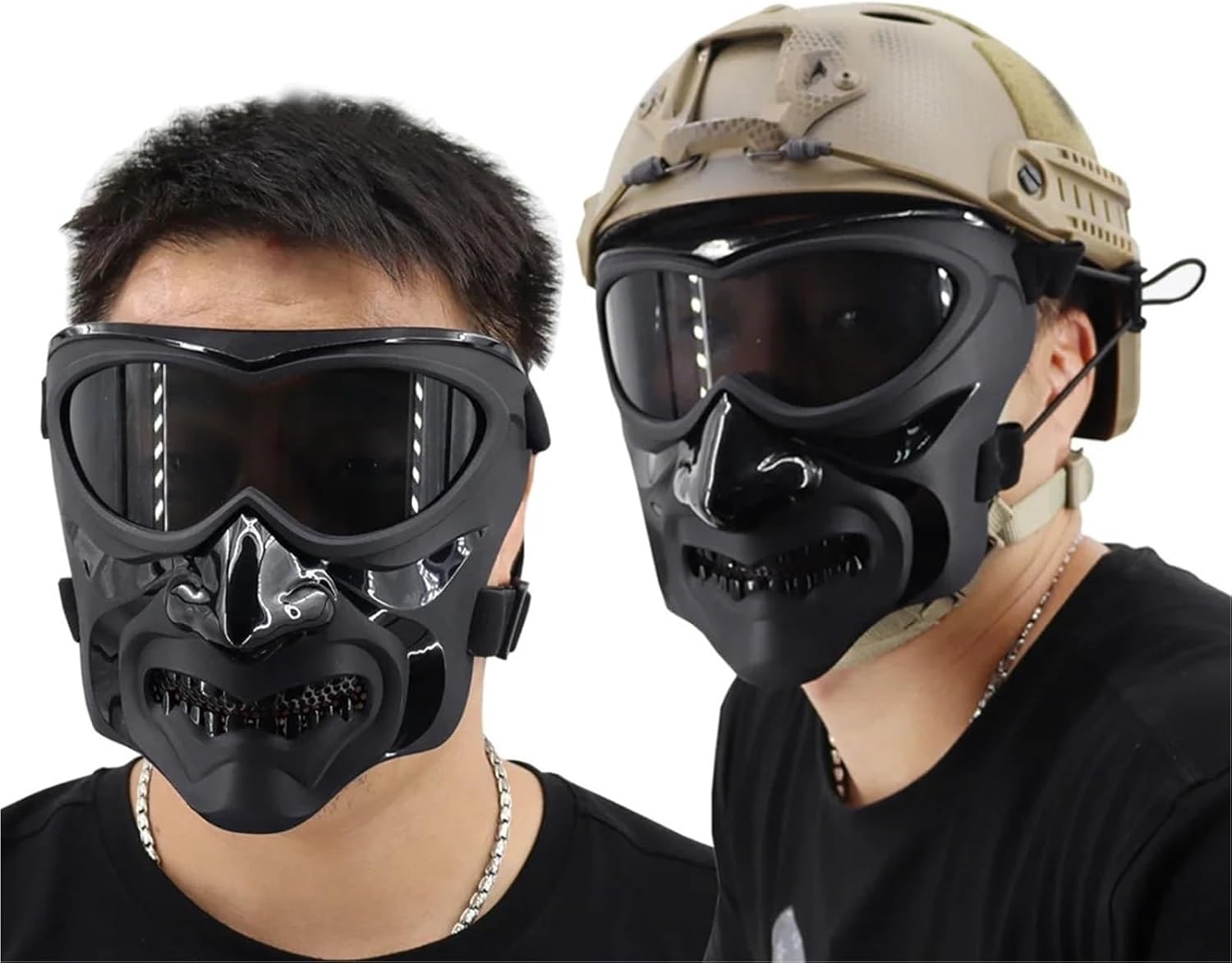Tactical Airsoft Shooting Mask CS Game Paintball Protective Full Face Mask Helmet Goggles Halloween Party Cosplay MaskFeature:1-Made of nylon material and unique design,it has a large field of vision than the ordinary masks2-The mask has breathable holes to ensure smooth breathing and more comfortable use 3-The mask is equipped with cushioning sponge ,which can reduce the impact and protect the face 4-Two ways to wear,Can be used alone or with helmet,quick release notch on the side,you can change the wearing method according to your needs 5-Applicable scene: Military, hunting, outdoor sports and other Tactical Airsoft Athletics etc.Material:NylonColor:BK/DE/MC/MCBK Package:1pcs Mask