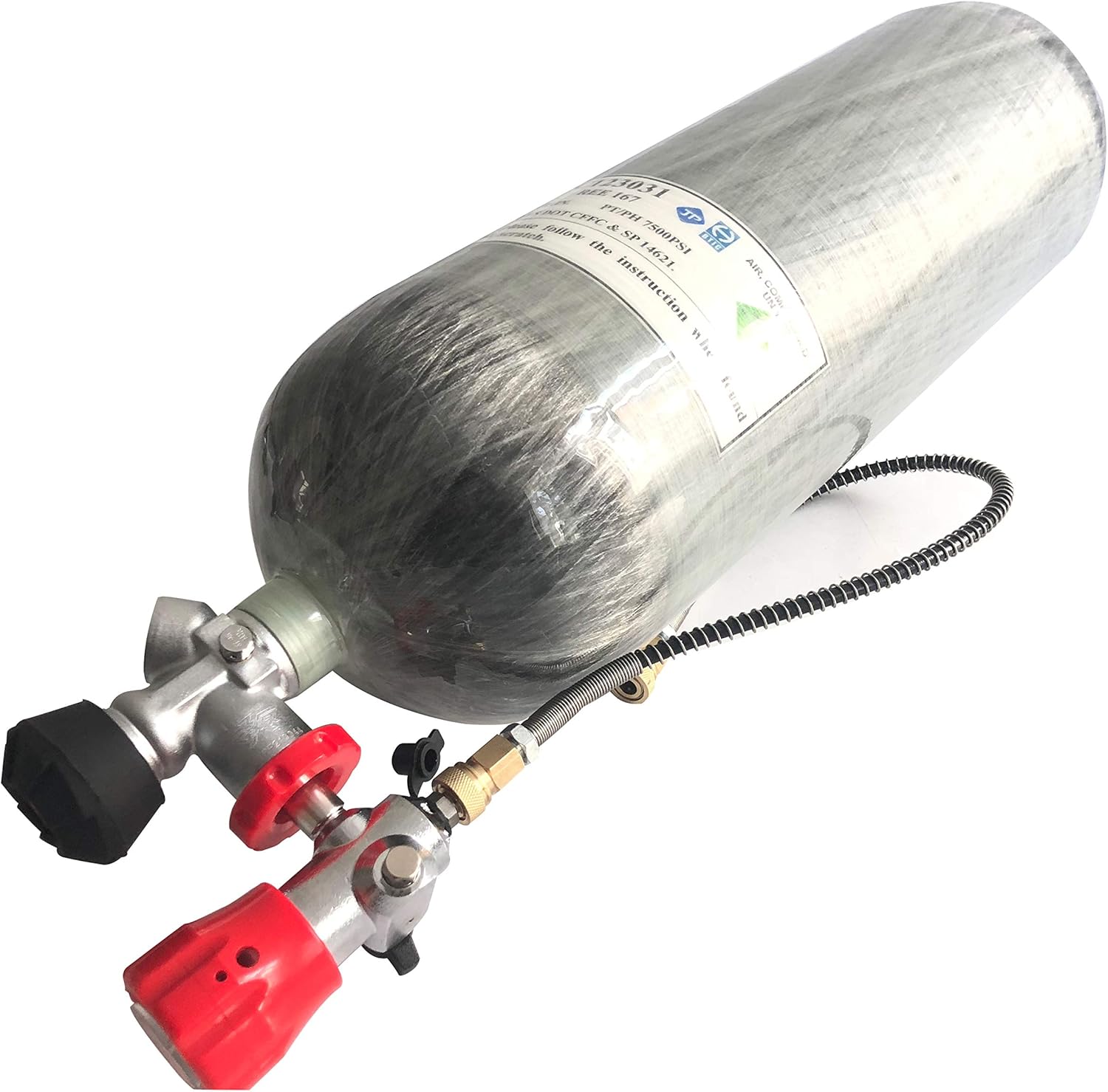 ⭐SAFE. It is tested after production to make sure it is safe.The innermost layer is aluminum, covered by high performance carbon fiber wrapped in epoxy resin matrix,enfolded by protective glass fiber wrapped in epoxy resin matrix, make it more strength while being lighter. ⭐NEW MANUFACTURE DATE. It is produced in recently 3 months, and we already did the hydro test after production. ⭐Light weight: Up to 30 percent lighter than comparable steel cylinders; ⭐High pressure resistance; ⭐Leakage first before explosion;