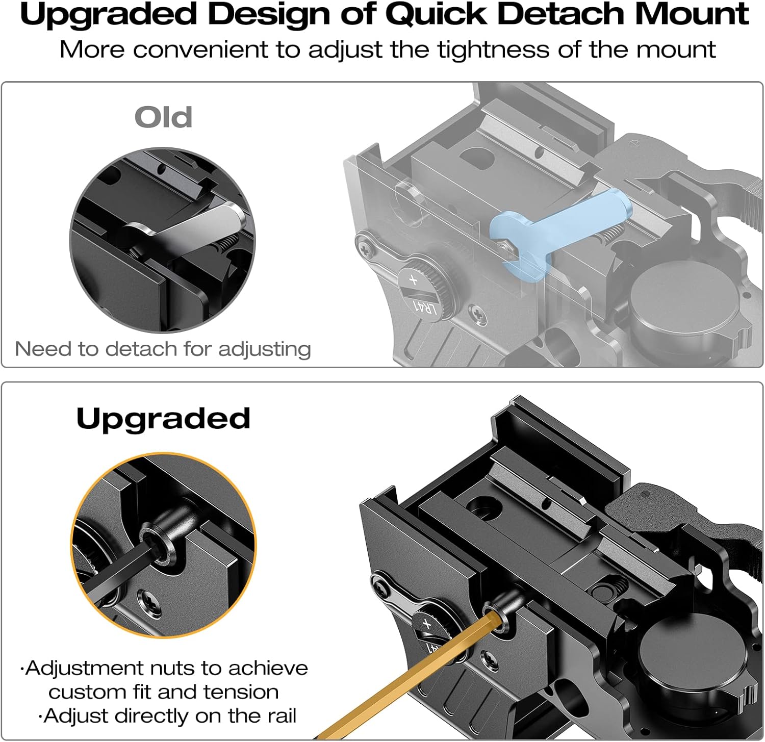 • Very sturdy and secure rail mounting system. Will not come loose, made to last. With quick detach mount, the dot sight can be quickly and easily installed and detached on most 20mm picatinny rails.