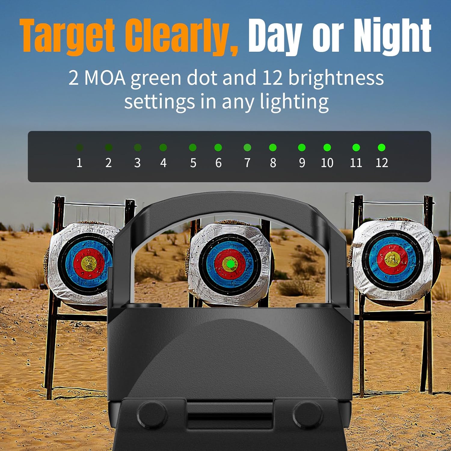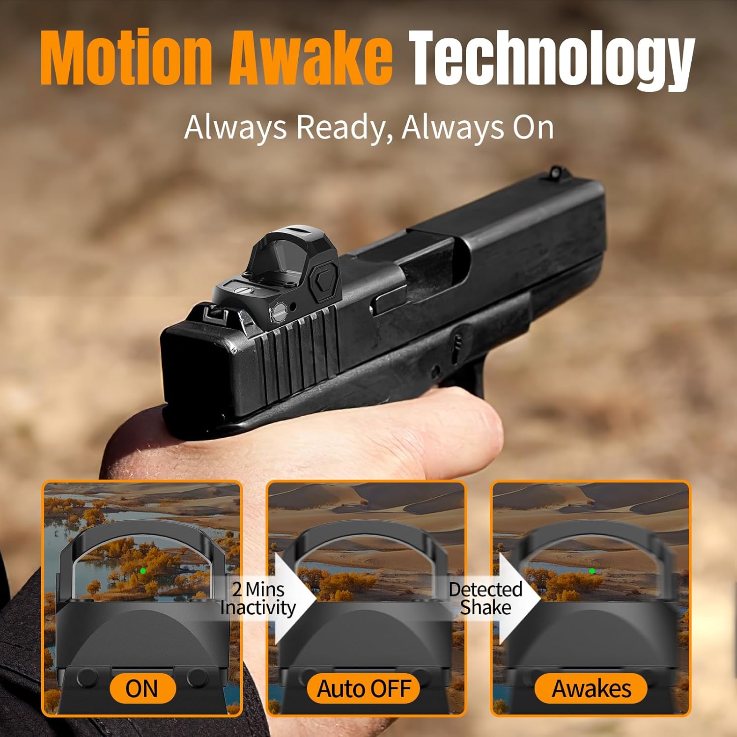 Qande Red/Green Dot Sight for Pistols, 2MOA Motion Awake Red/Green Dot Scope, 12 Brightness Adjustment Open Reflex Optics Sight,Suitable for RMR Cut Footprint or 20mm Picatinny Rail