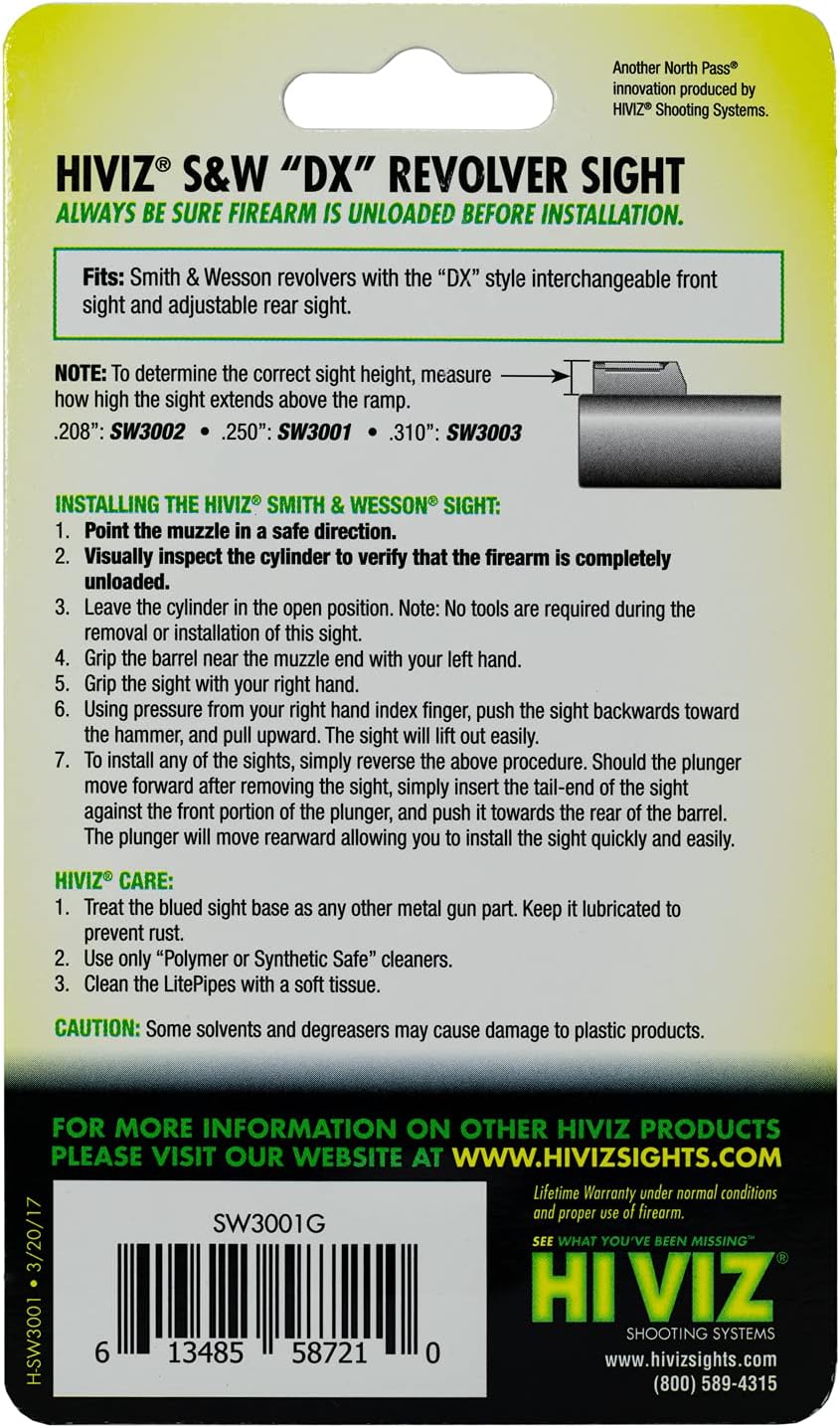 | Item Type Name | HiViz SW3001-G Smith&Wesson Fiber Optic Front Revolver Sight (.250 height) |