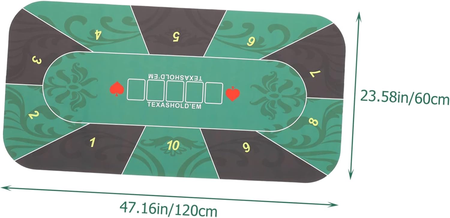 Package List 1 x Table Mat Features -Note:Suitable for 10 People family mat. -Material:Rubber tabletop mat -Color:Green printed mat -Size:120.00X60.00X2.00cm/47.16X23.58X0 non-skid table cover. - Suitable as a nice housewarming to your friends who like to play poker game or various board games universal tile game cushion. - The back side has latex design, not easy to skid, can keep in place, you can use rest assured table cloth. - Board game tablecloths are suitable for table decorations in hotels, families and restaurants board games table cover. - Classic texture, imitating a Poker Mat, with popularity and practicality household table cover. - Made of rubber material, fine workmanship ensure the practicality and durability of this table cloth multi-purpose tablecloth.Goods Informationgaming tabletop cover It has high durability, not easy to deform, suitable for most kinds of table games, easy to take to anywhere you need.universal mat This Board Game Mat is made of selected material, which can withstand the use.Poker mat It can also have good decorative effect to let your table have a different look