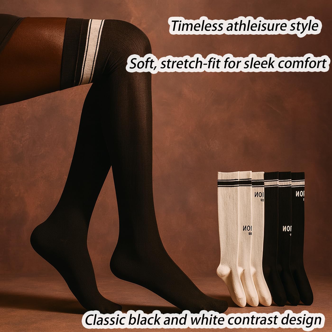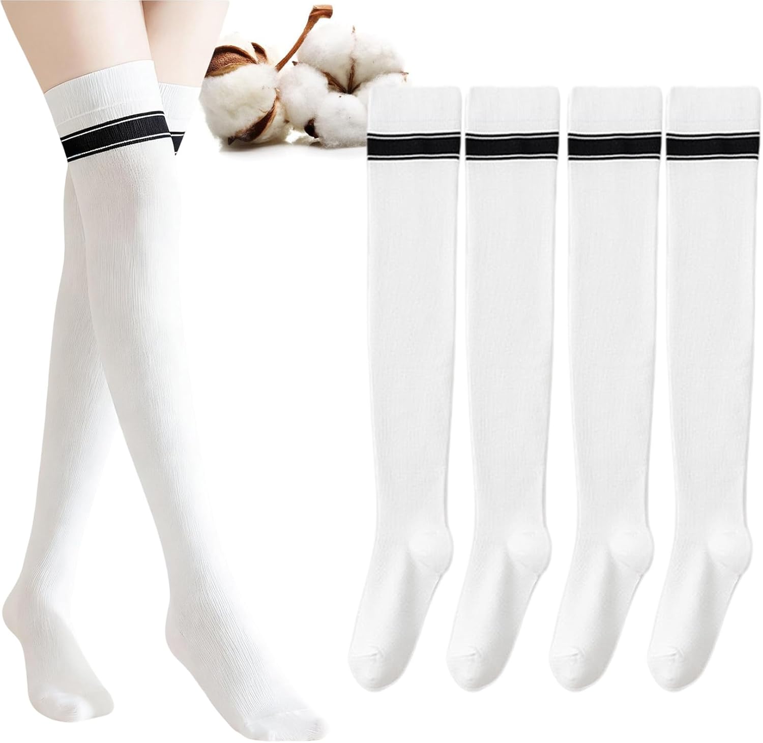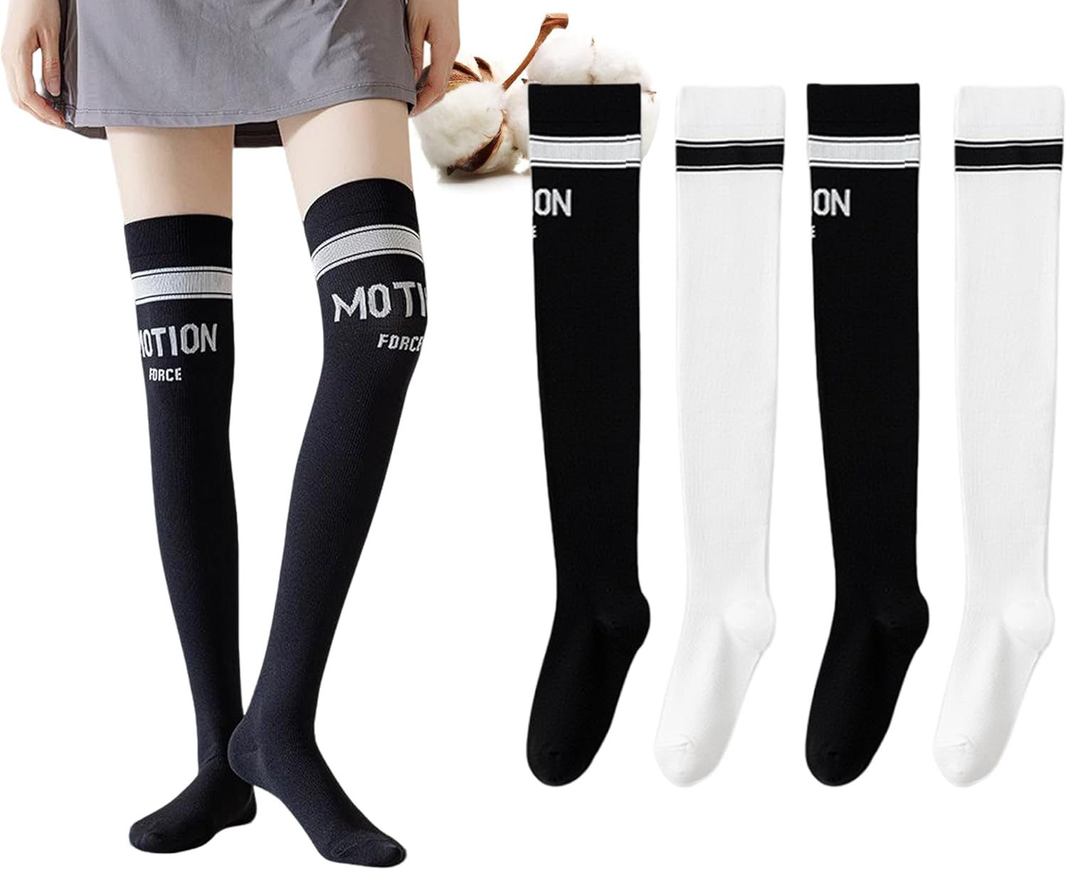 CHUNFO’s New Stripe Pattern Socks for all members with the hope of giving love to each other.Step into sleek comfort and timeless style with these Womens Over-the-Knee Athletic Socks. Designed for both fashion and function, they combine a soft stretch-fit with sporty compression for a secure, flattering feel.The black-and-white striped design adds a chic, minimalist touch that elevates any outfit — from workout gear to everyday street style.Made from a breathable cotton-blend material, these socks offer excellent sweat absorption, gentle support, and durable elasticity, making them perfect for both active days and cozy evenings.Whether you’re pairing them with sneakers for a sporty look or boots for fall fashion, these socks are your go-to for versatile comfort and effortless cool.Buy enough for you, your family and friends in CHUNFO’s socks avenue. Advanced cotton is chosen, and great technology is used for sweat-absorption, breathable and comfort. Hope to provide daily and athlete comfort, helping in increasing exercise balance and give support alternative to barefeet.There may be a deviation of 0.39-1.18 inch due to manual measurement. With the different settings of each monitor, the color of the object may be subtly different. We also look forward to your advice.
