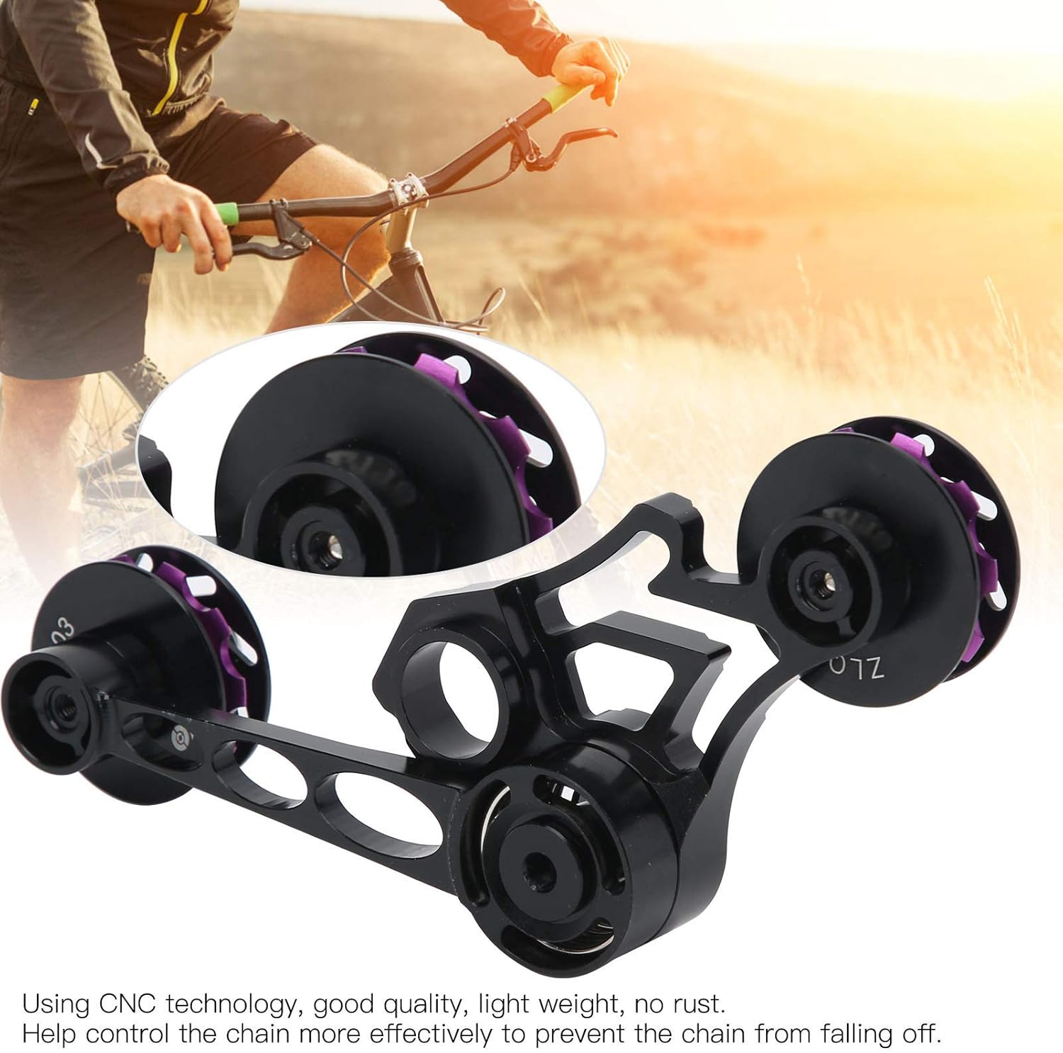 Item Type: Folding Bike Chain StabilizerMaterial: Aluminium Alloy Color: As Pictures Shown Weight: Approx. 150g/5.3ozPackage List:1 * Folding Bike Chain Tensioner