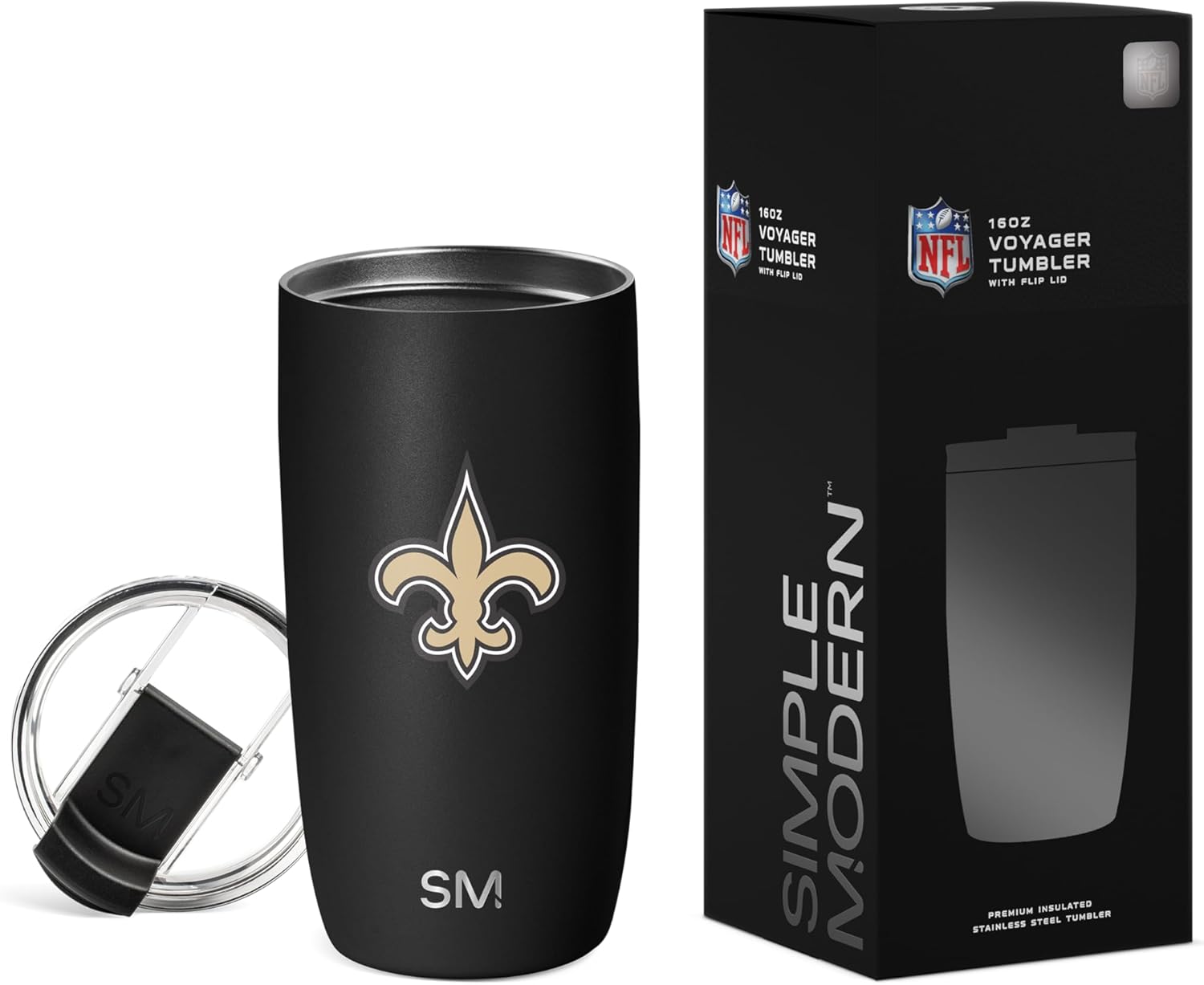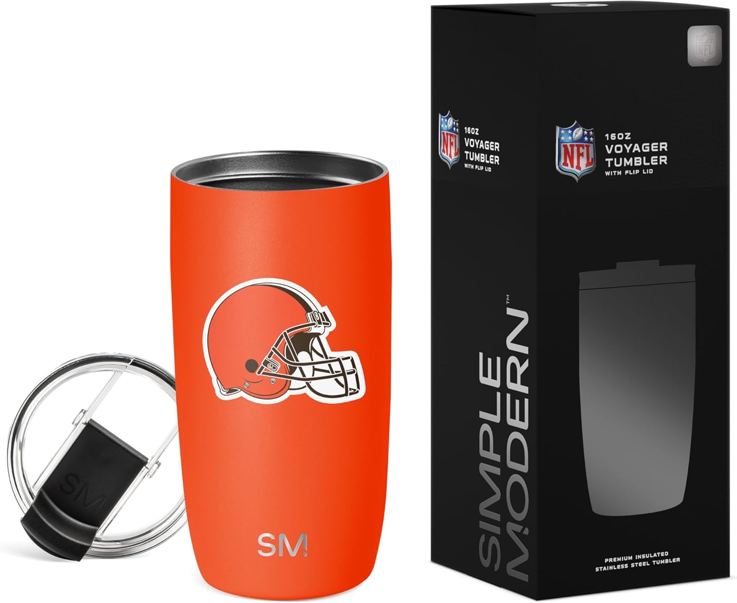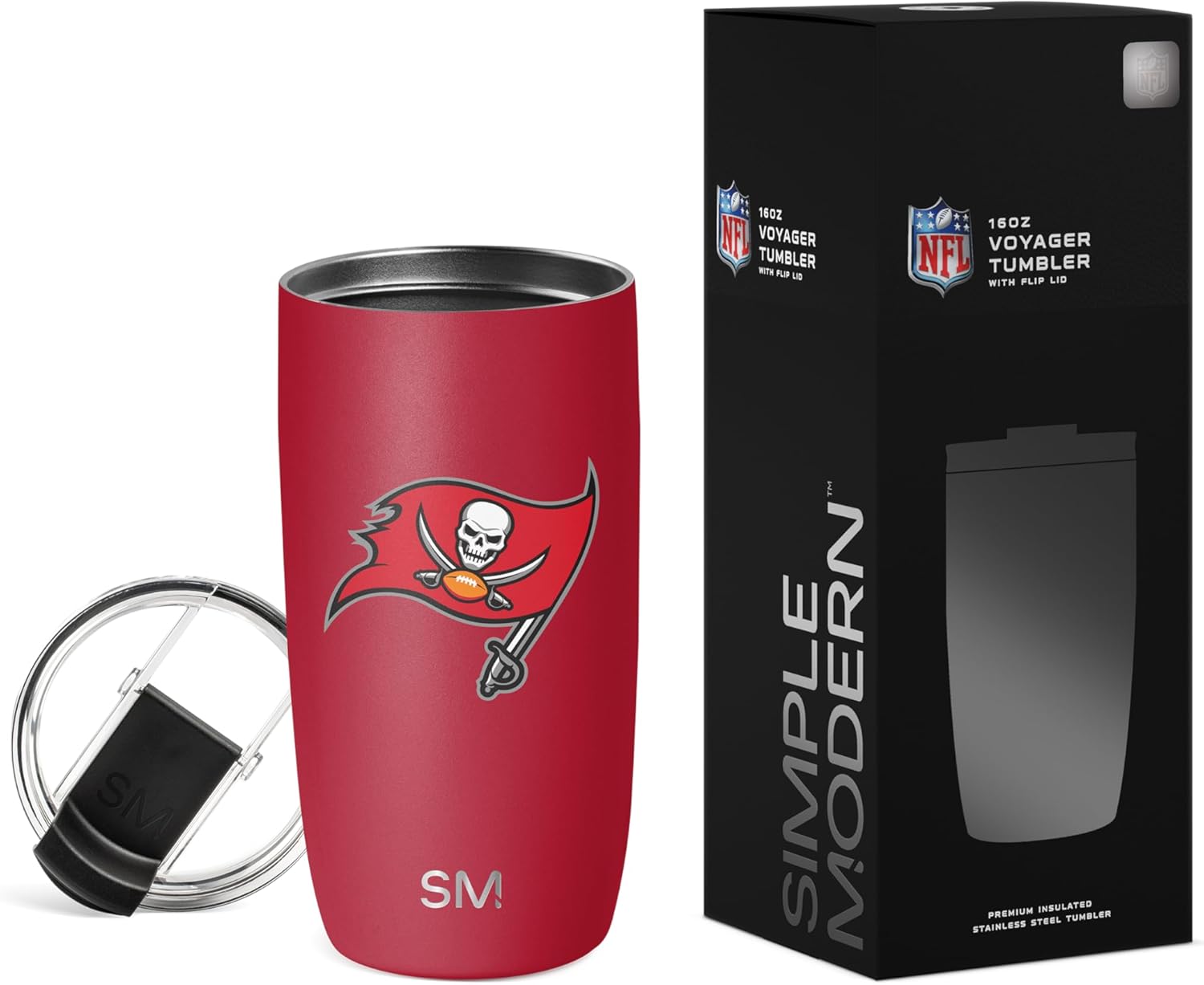The Simple Modern Officially Licensed NFL football Voyager Tumbler is double walled and vacuum insulated to keep your drink hot or cold for hours. It’s perfect for both hot and cold drinks, so you can fill your Voyager with coffee to sip during your morning commute or drop in ice cubes to keep your favorite thirst-quenching drink extra crisp. There’s a copper-coated layer inside the double-walled insulation that prevents sweating, so you don’t need to worry about the Voyager getting slippery or leaving water rings on your table. Plus, its narrow design makes it car cupholder-friendly and perfect for on-the-go hydration. Like all Simple Modern stainless steel products, the Voyager is made from premium grade materials and is designed to last. With durability like this, you’ll be refilling your Voyager and cutting down on single-use plastic for years to come. The tumbler comes with our twist-on, leak-proof Clear Flip Lid and two black BPA-free reusable straws.