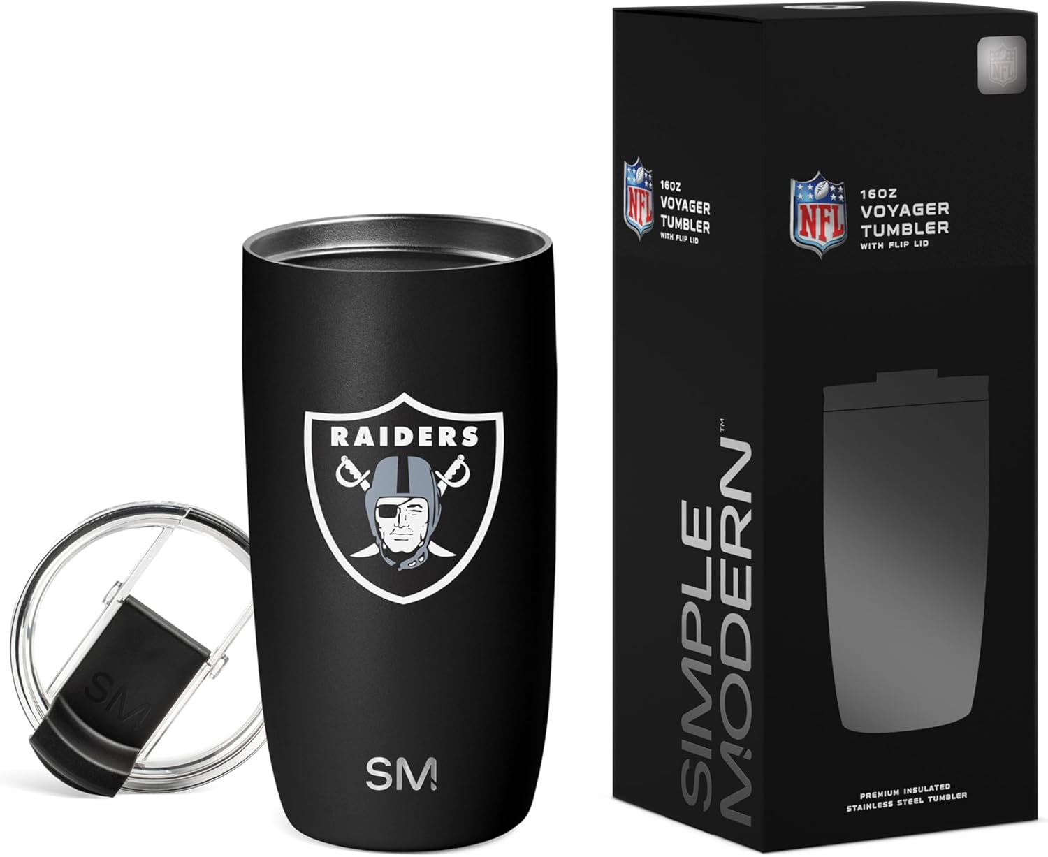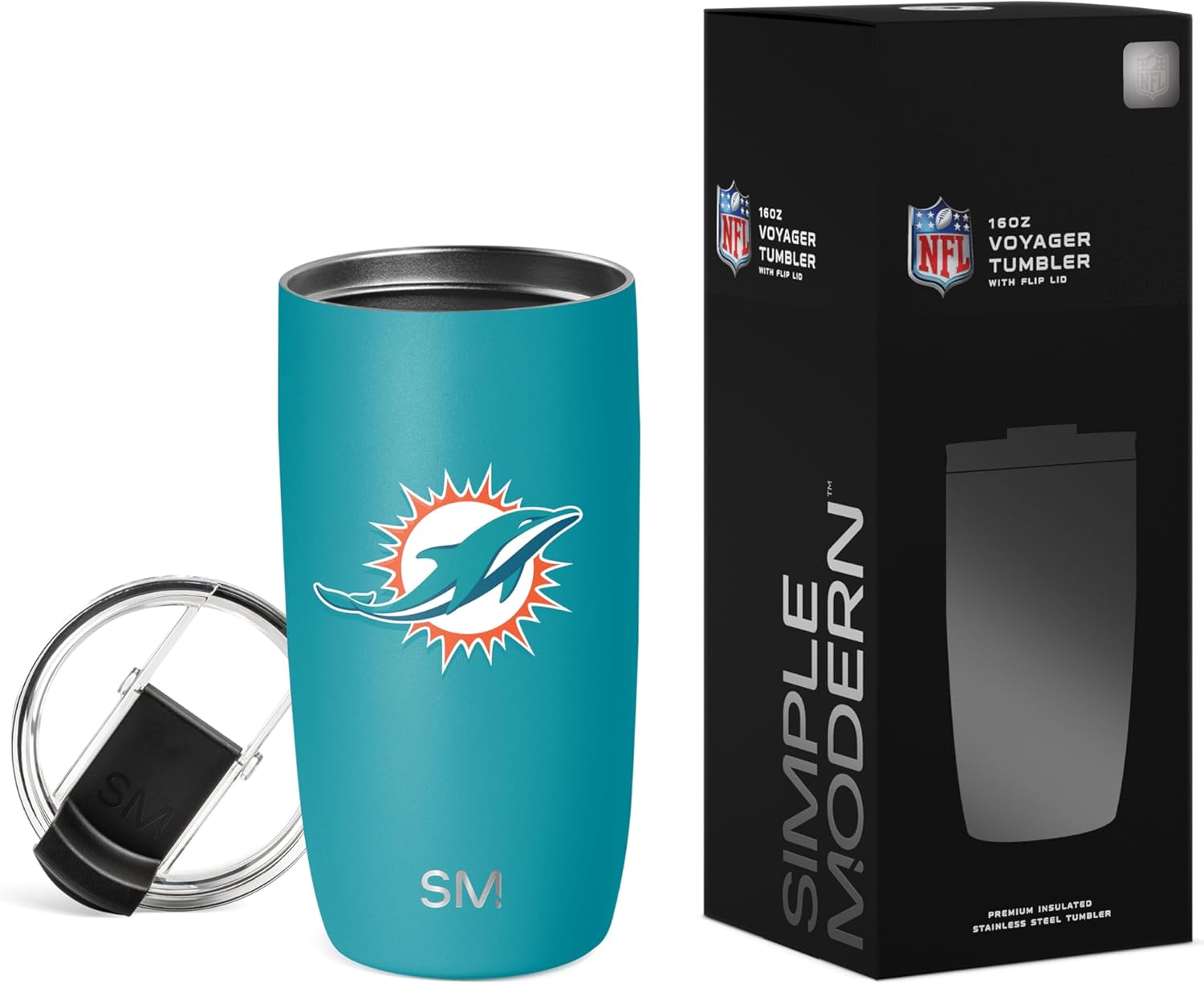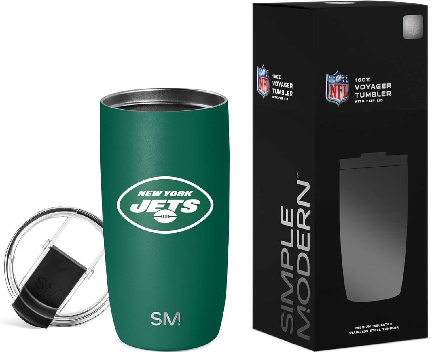 The Simple Modern Officially Licensed NFL football Voyager Tumbler is double walled and vacuum insulated to keep your drink hot or cold for hours. It’s perfect for both hot and cold drinks, so you can fill your Voyager with coffee to sip during your morning commute or drop in ice cubes to keep your favorite thirst-quenching drink extra crisp. There’s a copper-coated layer inside the double-walled insulation that prevents sweating, so you don’t need to worry about the Voyager getting slippery or leaving water rings on your table. Plus, its narrow design makes it car cupholder-friendly and perfect for on-the-go hydration. Like all Simple Modern stainless steel products, the Voyager is made from premium grade materials and is designed to last. With durability like this, you’ll be refilling your Voyager and cutting down on single-use plastic for years to come. The tumbler comes with our twist-on, leak-proof Clear Flip Lid and two black BPA-free reusable straws.