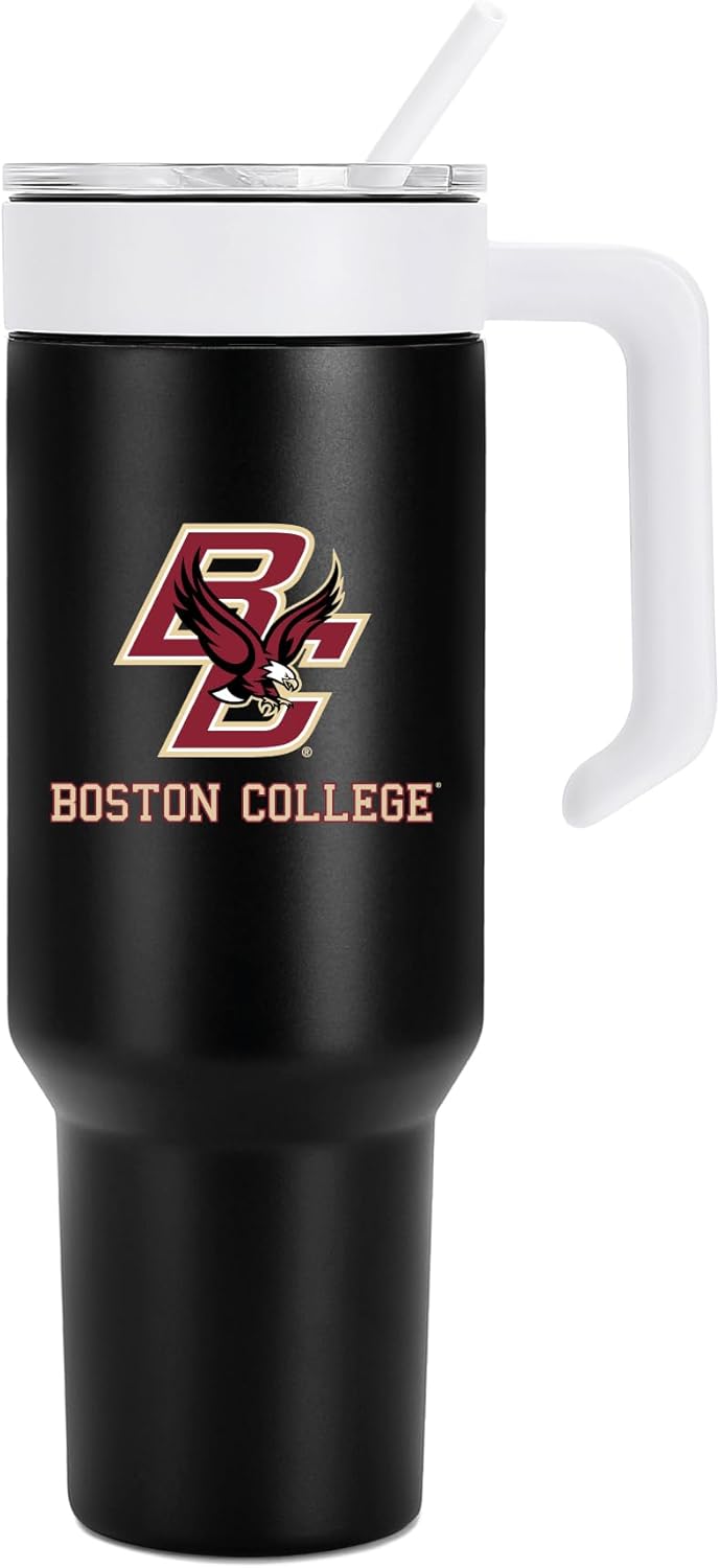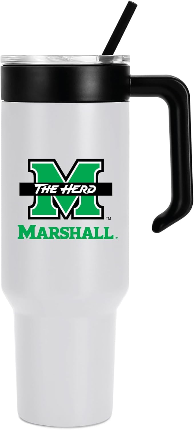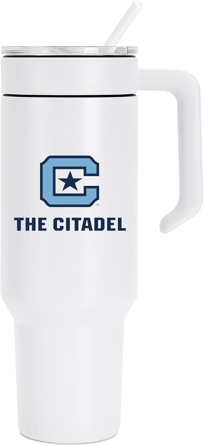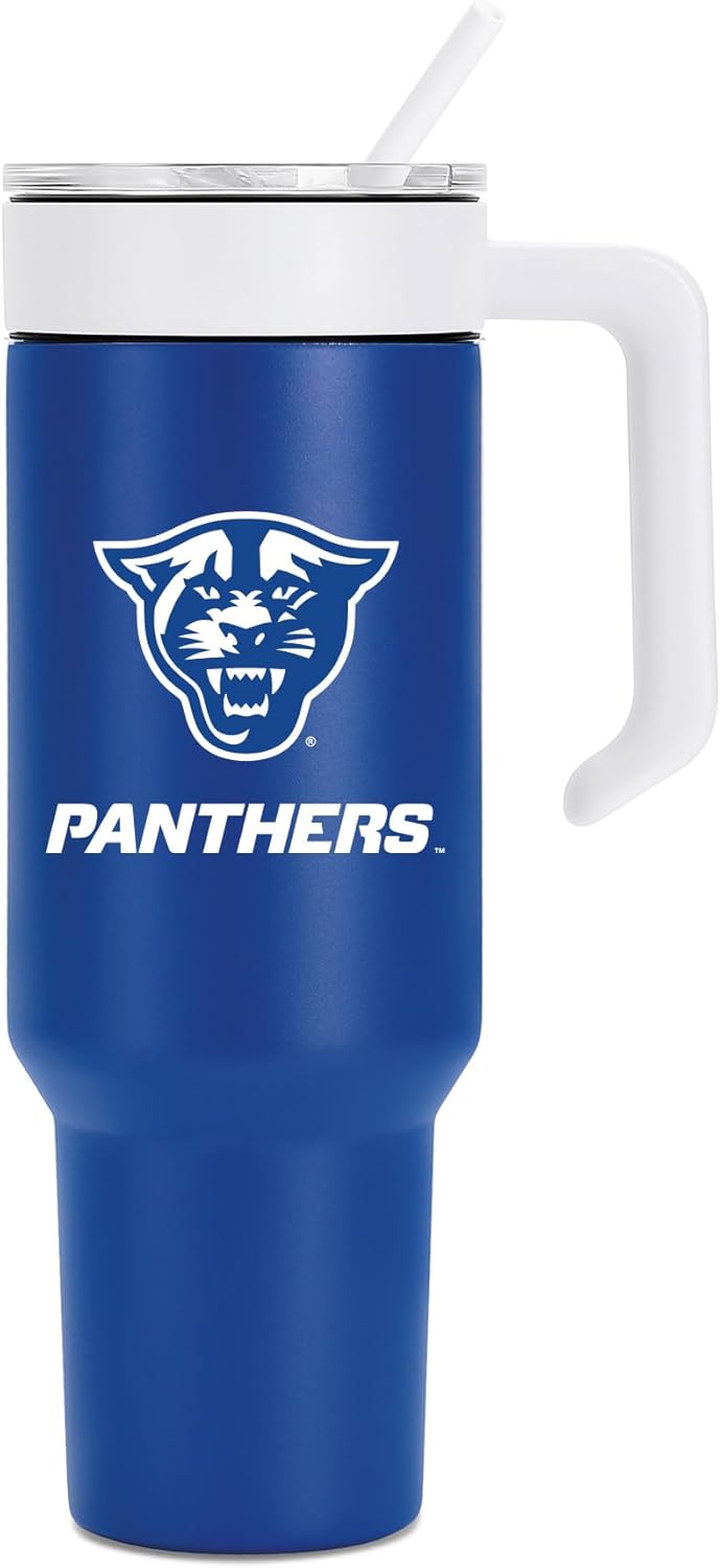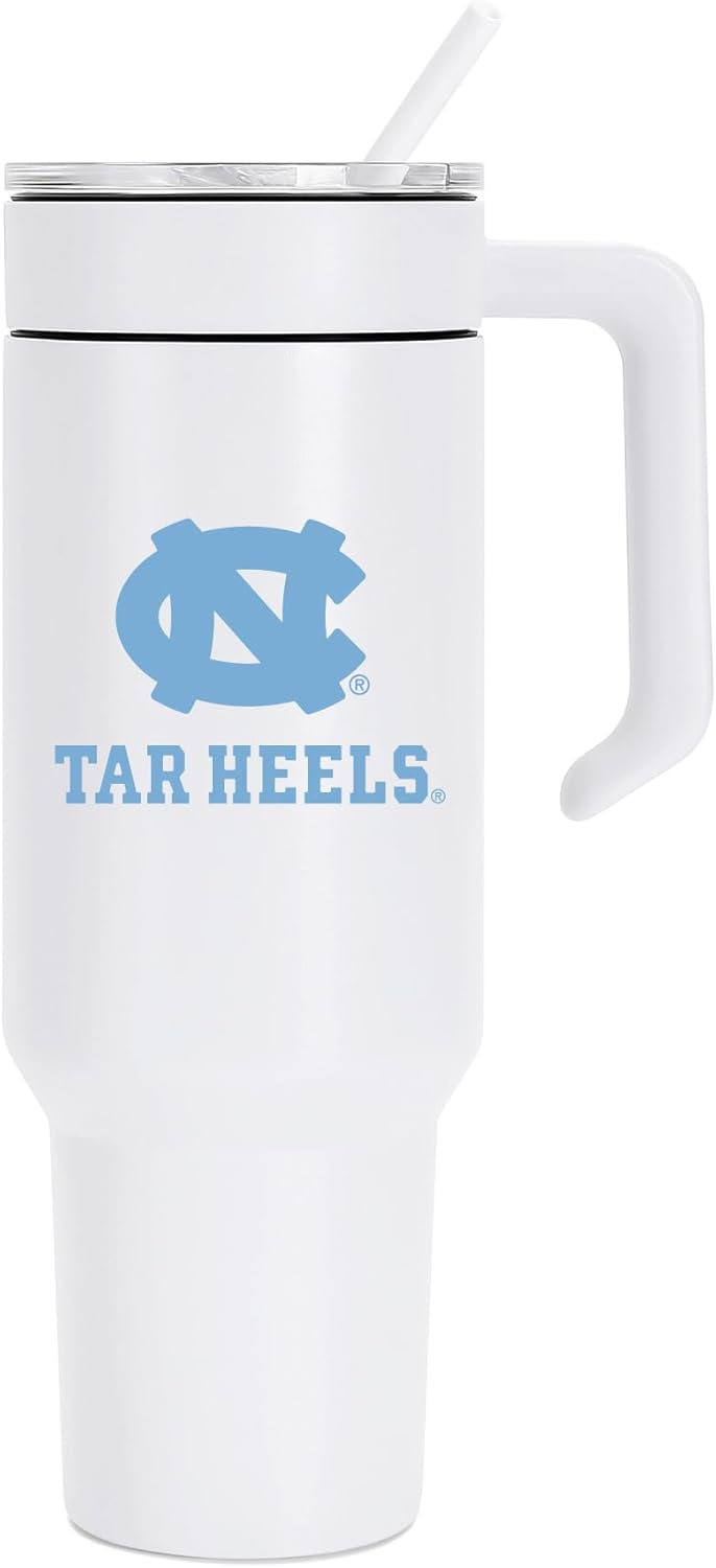 Enjoy your favorite beverages in style with this versatile double-wall stainless steel tumbler. Copper-lined and vacuum insulated, it keeps drinks cold for hours while preventing condensation on the exterior. The removable handle allows you to switch between a 48oz or streamlined 40oz tumbler, and the secure screw-on lid ensures a spill-resistant experience. Featuring a bold powder-coated finish, a vibrant design, and a color-coordinated flexible silicone straw, it’s as stylish as it is functional. Perfect for everyday use, tailgates, sporting events, or travel, this tumbler combines performance and flair in one convenient package.
