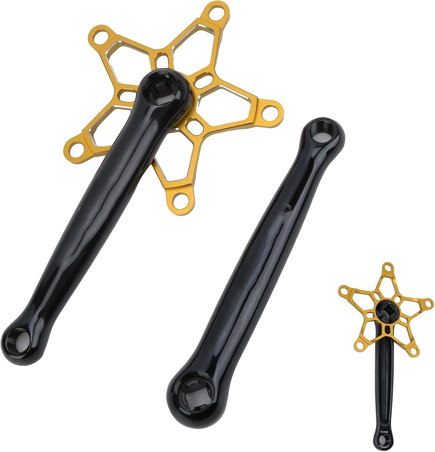 1. Made of aluminum alloy material, sturdy, durable and long service life. 2. BCD130mm, crank hole pitch 170mm, 5 holes for screw installation, matching with screws. 3. The strong and lightweight forged crank made of materials ensures strength and reliability. 4. Strict quality control and quality assurance, high safety factor, can be used with peace of mind. 5. Suitable for single-speed bicycles, tracked road bicycles, fixed gear bicycles, and folding bicycles. Spec: Item Type: Mountain Bike Crank Material: Aluminum Alloy Applicable Crankset: BCD Approx. 130mm/5.1in Crank Hole Distance: Approx. 170mm/6.7in PackageList: 1 x Right Crank 1 x Left Crank 5 x Round Disc Nail 5 x Screw