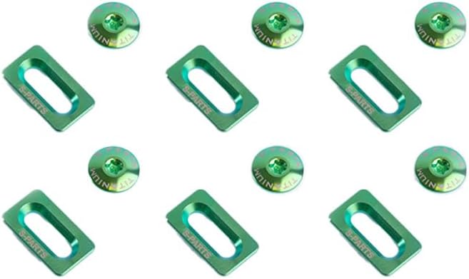 Upgrade your cycling experience with the S-PARTS Titanium Alloy Cleat Screw Set, specially designed for Shimano road bike cleats. Crafted from high-quality Grade S TC4 titanium alloy, these screws offer superior durability and lightweight performance, ensuring a reliable and comfortable ride. Each screw undergoes precision forging at "650 degrees" high temperature, enhancing its strength and resilience. The anodized finish adds a sleek and corrosion-resistant coating, while the vacuum nitriding process ensures long-lasting protection against wear and tear. With a weight of only 19.86g for a set of 12 screws, these S-PARTS cleat screws minimize additional weight on your bike without compromising on strength or quality. Plus, the compatibility with T25 Torx wrench makes installation and adjustment a breeze. Upgrade your cycling gear today with the S-PARTS Titanium Alloy Cleat Screw Set and enjoy smoother rides with enhanced performance and durability.