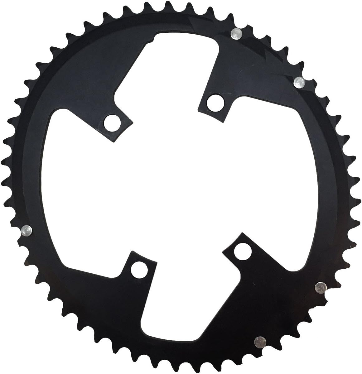 USAmade OVAL 110mm 4-BOLT SHARKTOOTH Road / CrossChainring Black Anodized Finish 5 Bolt Ramped and Pinned for shifting- NEW Performance Driven- Made in the U.S.A. (53T, 52T, 50T, 38T, 36T, 34T) ADVANTAGES OF OUR OVAL CHAINRINGS: Our Oval chainrings maximize rider efficiency by leveraging your pedal stroke where your power is produced and reducing resistance where your power is least. Oval rings allow you to climb easier and faster with less fatigue. They offer a consistent power delivery that allows you to maintain an even cadence and a higher output level for longer periods of time. Oval rings provide a smoother feel on your legs during climbing Higher average speeds have also been achieved in various studies. The power output attained during intermittent maximal sprints in one study was 2.4% - 6.7% greater with non-circular (Oval) chainrings.