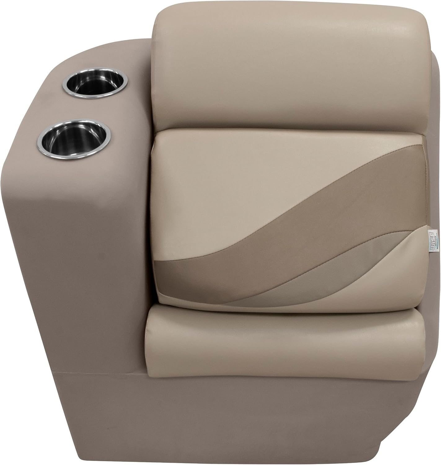 Wise BM13006L Premier Series Pontoon Left Radius Lean Back Recliner. Matched up with Wise Premier Series Pontoon Seat Cushion and Base brings luxurious comfort and extra storage to your pontoon boat. Constructed of thick wall rotational molded plastic with injection molded plastic cushion frame. Extended headrest design. Soft Touch marine grade vinyl. Plush high compression foam padding. Hinged cushion opens to reveal storage compartment. Dual stainless steel cup holders. Modern stylish base design. Pre-Assembled and ready to mount to the left side of seat bench from sitting position. Perfect color and style match with other Wise Premier Pontoon Seating components.
