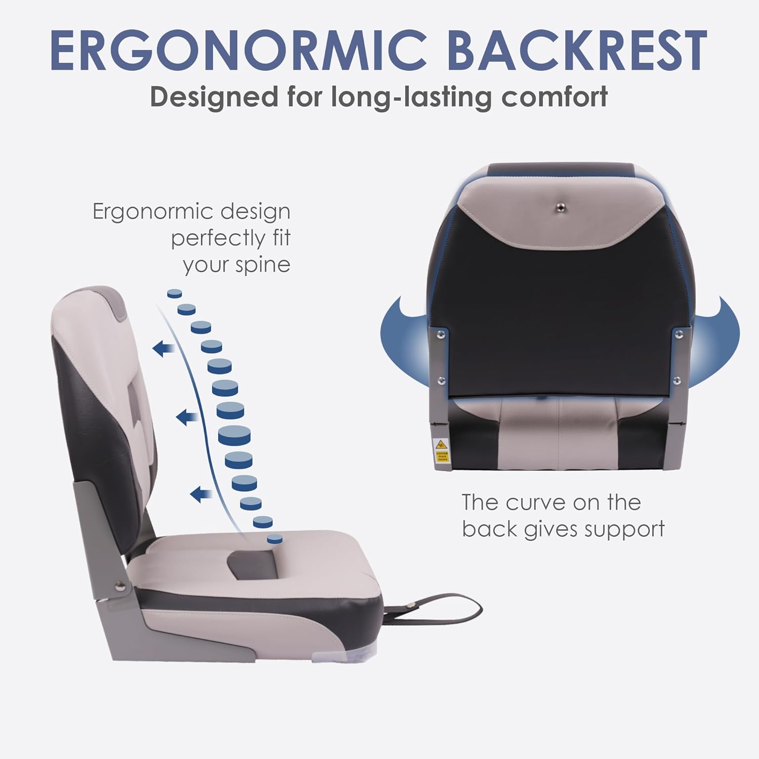 With heavy duty molded plastic frame, the angler low back seat easily stands up to rough marine environment. High density foam padding with marine grade vinyl ensure all day comfort. Fold down design with tie down strap make it easy for storage.
