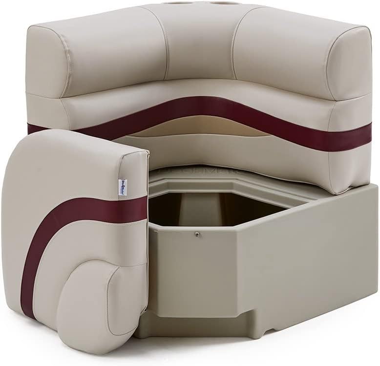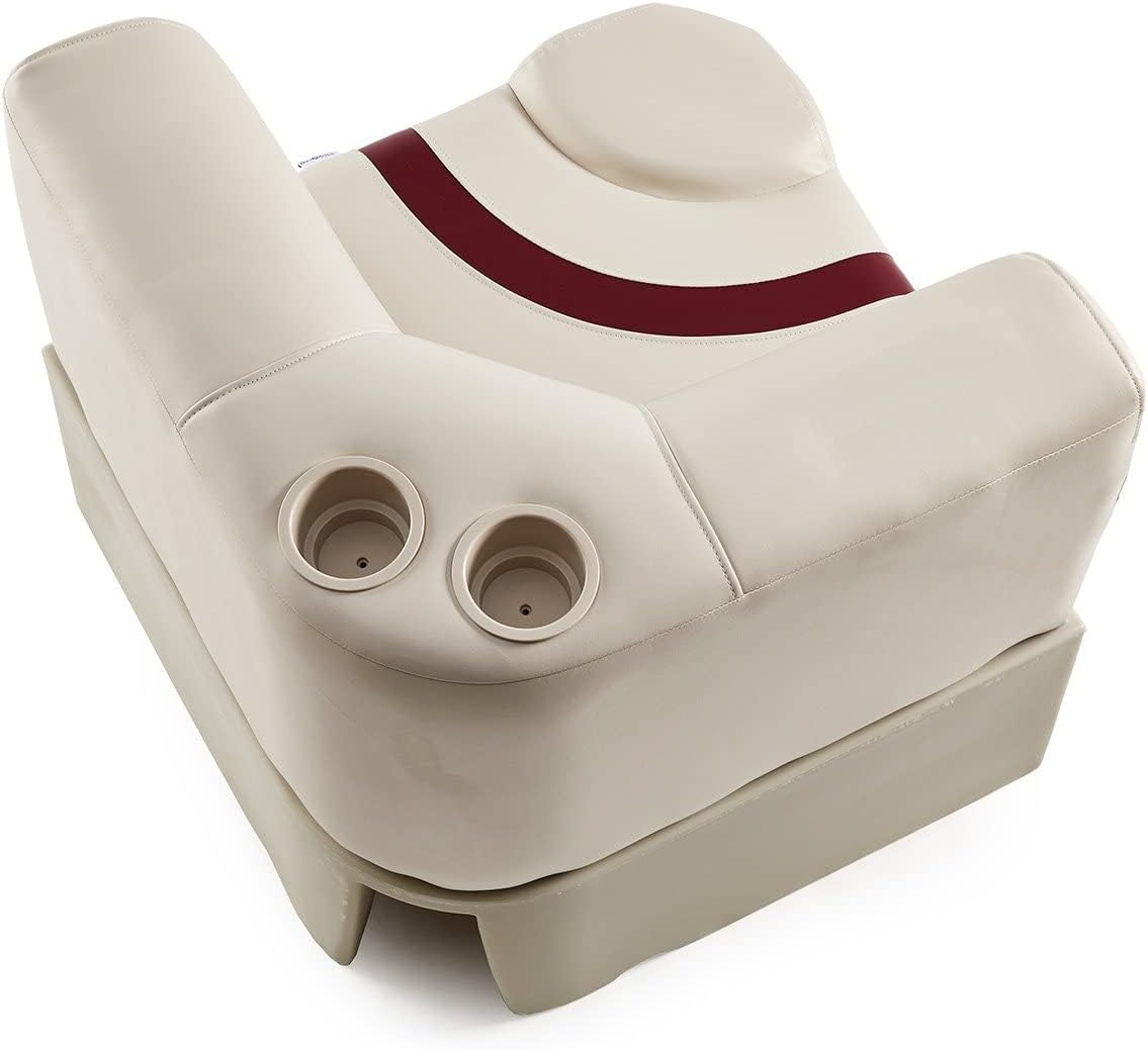 Our Premium Pontoon Boat Seats are ergonomically designed with plush molded soft and dense marine foam for long-lasting comfort. They offer 1.5" more cushioning than our classic line. We use double-top stitching on all stress points, so you never need to worry about torn seams. Our pontoon boat seats look new longer! We have designed our Classic line of seats to look like the OEM seats you see on new pontoon boats. Now you can really make that old pontoon look like it came directly off the pontoon factory floor. Our pontoon seats will last! The quality of your vinyl and foam won't matter if your seams tear or rot. That's why we only use the best UV treated polyester thread. 32 oz marine grade seat vinyl is coated and treated to exceed industry standards for UV resistance. Our pontoon boat seat cushions are built with a mix of soft and dense foam for a plush boating experience. Seat bases with molded drain channels increase the life of your pontoon flooring by allowing water to escape your deck instead of being trapped and left to soak into your carpet and decking. No wood! All of our pontoon furniture frames are plastic. We use injection-molded plastic seat cushion frames and rotationally molded plastic seat bases. High-grade stainless steel hardware and staples are used on our pontoon seats, along with t-nuts, which are inserted into the plastic bases to secure each pontoon seat cushion. Pontoon Boat Seat Dimensions: Overall Pontoon Seat Width: 38" Overall Pontoon Seat Height: 30" Overall Pontoon Seat Depth: 27" Pontoon Seat Cushion Height: 17" Pontoon Seat Cushion Depth: 19" Pontoon Seat Cushion Thickness: 5" Pontoon Seat Base Depth: 24"