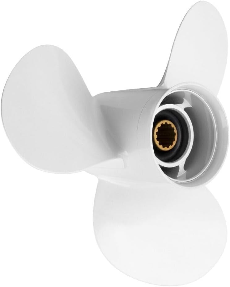 MARKGOO Outboard Propeller 12-5/8X11-G Pitch 13 Spline Tooth for Yamaha Outboard Engines 25 30 40 48 50 55 60 HP F30 F40 F50 F60OEM Part No.69W-45947-00-00, 69W-45947-00-EL, 663-45947-02-EL, 663-45947-02-36, 663-45947-01-36., it fit Yamaha outboard Engines 25-60 HP, RH, 3 1/2" Gearcase.Recommended fit Engines less than 250hp, Top speed less than 50 mph / 80 kphBoat types: Houseboat, Inflatable - Soft Hull, Inshore Fishing, PontoonPROPELLER SPECIFICATION:Diameter: 11 5/8 inchPitch: 11 inchBlade: 3Tooth: 13Rotation: RightMaterial: Alloy-AluminumVERY IMPORTANT: Kindly please check your boat handbook and find out correct size for your propeller. we suggest you to confirm your own propeller's diameter, pitch, rotation,OEM number, horsepower before the purchase.APPLICATION:Yamaha 25 hp T25 2010-UPYamaha 30 hp F30 2001-2005Yamaha 40 hp C40 1984-UPYamaha 48 hp 1995-2000Yamaha 50 hp 1984-UPYamaha 40 hp F40 1999-UPYamaha 50 hp F50 1995-UPYamaha 55 hp 1976-1995Yamaha 60 hp 1976-1991Yamaha 60 hp F60 1999-UPINSTALLATION INSTRUCTION:The propeller includes hub kit (hub, splined hub, thrust washer, prop nut and keeper).Just remove prop locknut, locknut retainer and forward thrust washer. Then Install forward thrust washer, Insert drive sleeve into prop, Slide prop on prop shaft, Insert drive sleeve adapter, Slide locknut retainer, Install prop locknut, Insert sth to prevent spinning.
