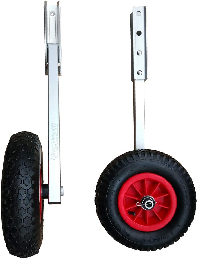 Features:Move your boat more easily with this set of boat launching wheels. The wheels easily lock up when not in use and just as easily fold down when ready for use. You'll wonder how you ever moved your boat without these. These wheels install incredibly easily. Simply attach the two brackets to the transom of your boat. When your boat is underway, you can lock the wheels up into a locking position or they can simply be removed. The 12" pressurized wheels can support up to 500 lbs. Ideal for dinghies, car toppers and other small boats. All hardware is included except for the transom bolts (installation conditions vary and these cannot be included but are easily purchased at a hardware store).