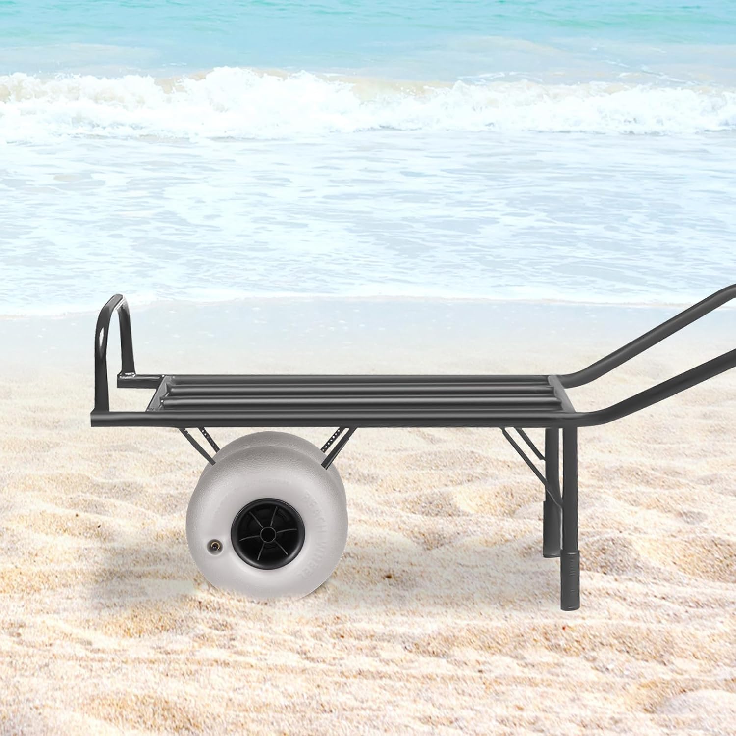 DescriptionThink about the last time you went to the beach or any time you had to bring a lot of stuff to make the day great. Wouldn't it be nice to have a handy helper? Luckily for you, we have this beach wheel to help move and transport your cart effortlessly. This beach inflatable wheel ensures that nothing can stop you this summer.Key FeaturesConsiderate Design: These large beach wheels are specifically designed to handle sand. Thanks to its smooth, lightweight tread pattern, these wheels provide enough traction to roll easily over the sand with minimal effort.Easy and Fast Inflation: The inflatable wheels are equipped with easy on/off nozzles for you to easily inflate and deflate. You just need to gently twist the nozzle.Fashionable Appearance: These large beach wheels are designed specifically designed to handle sand. With it's smooth, light tread pattern; these wheels provide just enough traction to roll easily over sand for minimal effort. Stop dragging your cart through the sand and use these wheels to bake trips to the beach even easier!Protective Packaging: The products are packed in cardboard boxes after aspiration, which can protect them well from damage during transportation. The protective packaging allows the products to reach the customer intact.Customer Service: We aim to provide quality products and services. If you have any problems, please feel free to contact us. We will reply and solve the problem for you as soon as possible.Details Pure Copper Cap: The cap is made of high-strength, wear-resistant copper, so it is strong and durable.Anti-slip Surface. The uneven pattern of the surface increases the friction with the ground so that it can run stably.PE Wheel Hub: The wheel hub is made of high-quality PE so it is corrosion and wear-resistant and can be used for a long time without damage.Nylon Axle Plug: Tensile and wear-resistant nylon and a six-jaw structure provide excellent performance for the axle plug.ApplicationThese beach inflatable wheels can get through the sandy beach and transport a heavy load across any sandy or uneven terrain. It is versatile, making it a perfect companion for beach trips, camping, fishing, and gardening.SpecificationMaterial: PVCColor: Silver GraySingle Maximum Load Capacity: 40kg/88.18lbsMaximum Range of Inflatable Air Pressure: 3-5PSI/0.2-0.34BAROuter Diameter of Wheel Hub: 10.5cm/4.13inInner Diameter of Wheel Hub: 20mm/0.78inGross Weight: 2.6kg/5.73lbsNet Weight: 2.3kg/5.07lbsPackage Size: 28x18x18cm/11.02x7.08x7.08inProduct Diameter: 25.4cm/10inProduct Thickness: 11.43cm/4.5inPackage Included2xBeach Inflatable WheelsNotes1. This product is low-pressure slow-speed tires for cart or slow-speed car use, not for high-speed or electric.2. Inflation pressure is 3-5PSI/0.2-0.34BAR, please do not exceed this range. The maximum diameter after inflation, please do not exceed 10 inches, otherwise, it will cause damage to the tire.3. Please allow the slight color difference caused by the shooting light and 1-3cm error due to manual measurement. Please make sure you do not mind before you order.