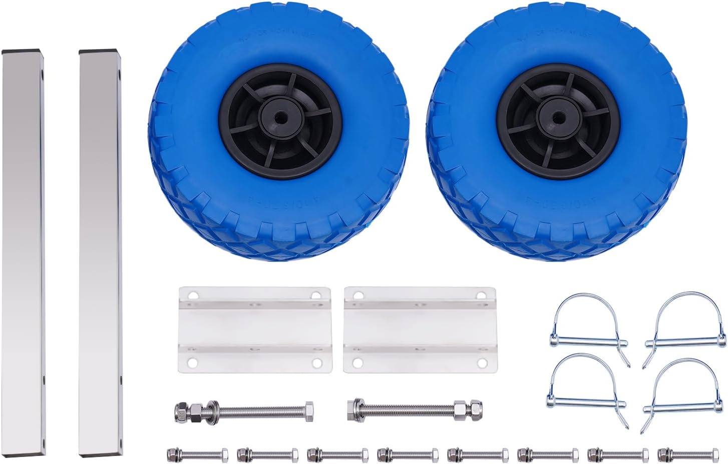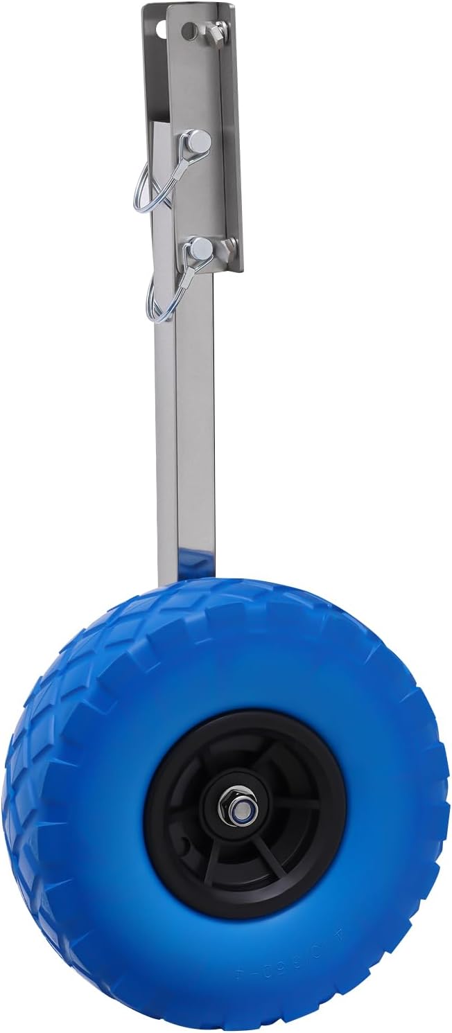 DescriptionThis inflatable boat trailer wheel is made of high-quality rubber tires as well as stainless steel frames, so it has an extremely high weight capacity. The combination of high-quality foam wheels and high-strength stainless steel makes the whole inflatable boat easy trailer wheel more sturdy and durable. Pairing it with your inflatable boat or trailer, etc. will allow you to move these large tools easily. It is universal, so it can be used for all kinds of inflatable boats as well as trailers, etc.ApplicationThis inflatable boat trailer wheel is universal and not limited, so it can be used for all kinds of inflatable boats and trailers, etc.SpecificationMaterial: Stainless Steel+PlasticColor: BlueTires Diameter: 25cm/9.84inBracket Size: 15*8.5cm/5.91*3.35inWidth of Wheel Side Section: 8cm/3.15inRod Length: 40cm/15.75inGross Weight: 5.1 kg/11.24lbsMax Load: 150kg/330.7lbsPackage Volume: 53*29*14cm/20.87*11.42*5.51inInstallation1. Install the long screws on the concave side.2. Install the four short screws at the interface of the boat and the tire.3. Tighten the screw cap.4, Install the ear buckle.Package Included2*Wheels2*Long Screw Caps2*Brackets2*Square Tubes4*Ear Buckles8*Short Screw Caps1*English ManualScrews for InstallationNotes1.Please note that the wheel is not designed to be towed behind the vehicle. It's only suitable for short-distance beach moves, not highways.2.Please allow the slight color difference caused by the shooting light and 1-3cm error due to manual measurement. Please make sure you do not mind before you order.