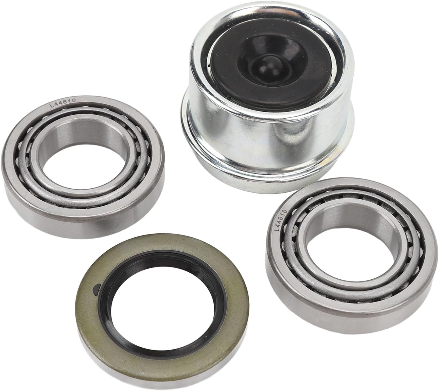 Item Type: Trailer Wheel Hub Bearings KitMaterial: Chrome steel alloy + steel alloy + rubberPackage Includes:Set of 2, Includes 14 pieces:L44643 Inner Bearing x 4L44610 Outer Race x 412192TB Seal x 2 (1.25in I.D)Cotter Pin x 2Dust Cap x 2Fitment: Fits 1 inch 2000-2200 LB boat trailer axle.Package List:2 x Trailer Wheel Hub Bearings Kit(14 Pieces in Total)