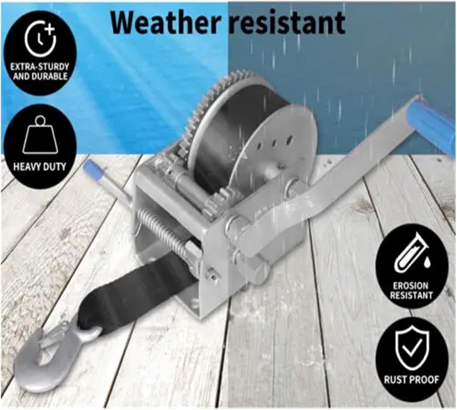 Key Features:700kgs/1600lbs Pulling powerHeavy-duty steel constructionSmooth and easy operationLock and Unlock clutchMooring hook with safety pawlWeather-resistantDetachable and anti-slip handleConvenient and effortless crankingPre-set universal mounting holesEasy to mountSPECIFICATIONFrame material: SteelStrap: WebbingPulling power: 700kgsStrap size: 50mm x 7.5mNet weight: 5.3kg