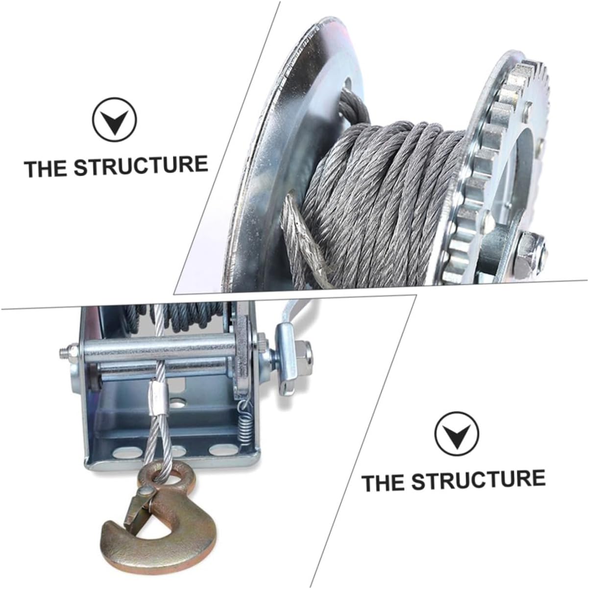 Package Include 1 x hand winch 1 x steel wire rope (10m) Features -Cable length: about 10m/32.8ft trailer winch for boat. -Pull force: 1500 kg portable winch rope. -Breaking strength: about 1500kg portable crank hand winch. -Wire rope diameter: about 4 mm/0.16 inch winch for truck. -Product Info:Hand winch with steel cable -Material: Steel. -Gear ratio: 4.1:1 hand winch with cable. - Size: 25.00X19.00X15.00cm/9.82X7.47X5.89in -Color: Silver. -Fine workmanship, excellent texture, maximum strength, long life, rust-proof and durable wire rope. -It can be used to lift heavy objects and tow. It is an excellent vehicle accessory boat anchor winch. -The product has high strength, good texture, and can be durable for a long time, providing you with a better way of traction and handling Towing Winches. -Preferred materials, , safe, durable and practical. -The design is great, the handle is arc-shaped, and the good structure helps reduce user fatigue and productivity heavy-duty winch.Goods Descriptiontowing towing winch It can serve you better and will bring you a better experience.trailer winch rope It is made of excellent craftsmanship, more durable, not easy to damage and wear, and has a .Winch with Wire Rope The heavy-duty steel hand winch has reasonable design, practical functions and strong carrying capacity, which can provide better traction and help you to carry it more easily