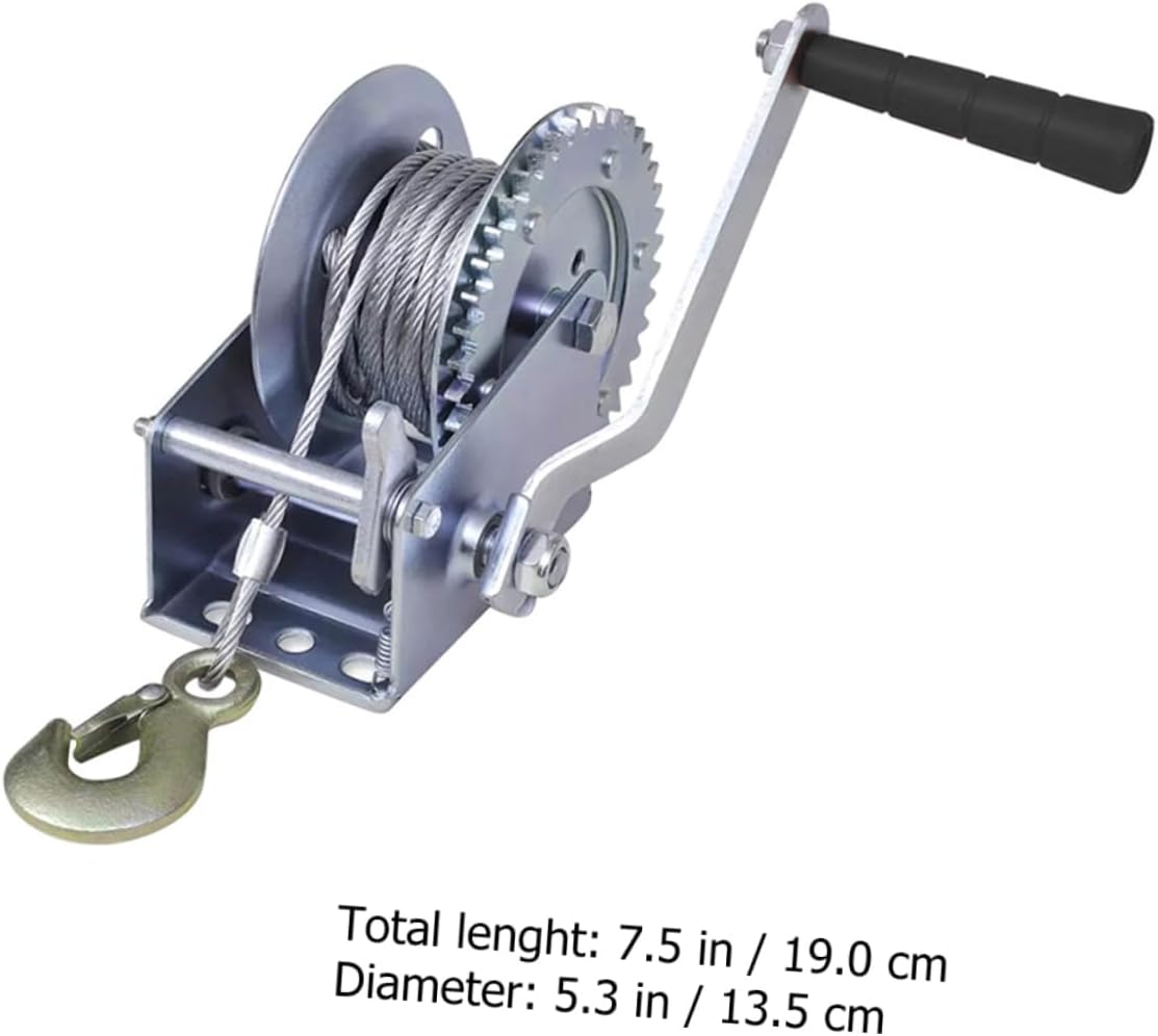 Package List 1 x hand winch 1 x steel wire rope (10m) Features -Material: Steel Trailer Winch. -Color: Silver Hauling Cable for Car. -Breaking strength: about 1500kg Winch with Wire Rope. -Wire rope diameter: about 4 mm/0.16 inch Manual Winches. -Cable length: about 10m/32.8ft Boat Trailer Winch. -Pull force: 1500 kg Wire Rope Handle Crank Winch. -Size: About 19.00X13.50X11.00cm/7.47X5.31X4.32inch Hand Crank Winch. -Gear ratio: 4.1:1 Boat Towing Winch. -Small and portable, professional and practical, it can serve you will not take up too much space when used Hauling Cable. -Made of sturdy steel, it has a long service and excellent texture Hand Winch. -The design is reasonable, the grip is comfortable, and the . The crank is easy to shake, reducing hand fatigue Heavy. -The multi-function manual winch is for loading/towing boats, lawn equipment or lifting heavy objects Towing Winches. -Heavy-duty steel structure, wear-resistant, very durable, and can better meet your needs Hauling Cable for Vehicle.Goods InformationBoat Trailer Winch This is an excellent traction tool that will to your daily .Hauling Cable for Car This is an efficient and practical hand winch, mainly made of sturdy and durable steel, durable and not easy to damage.Trailer Winch The design structure is reasonable, the texture is , it can carry heavy objects, and it is easy to carry
