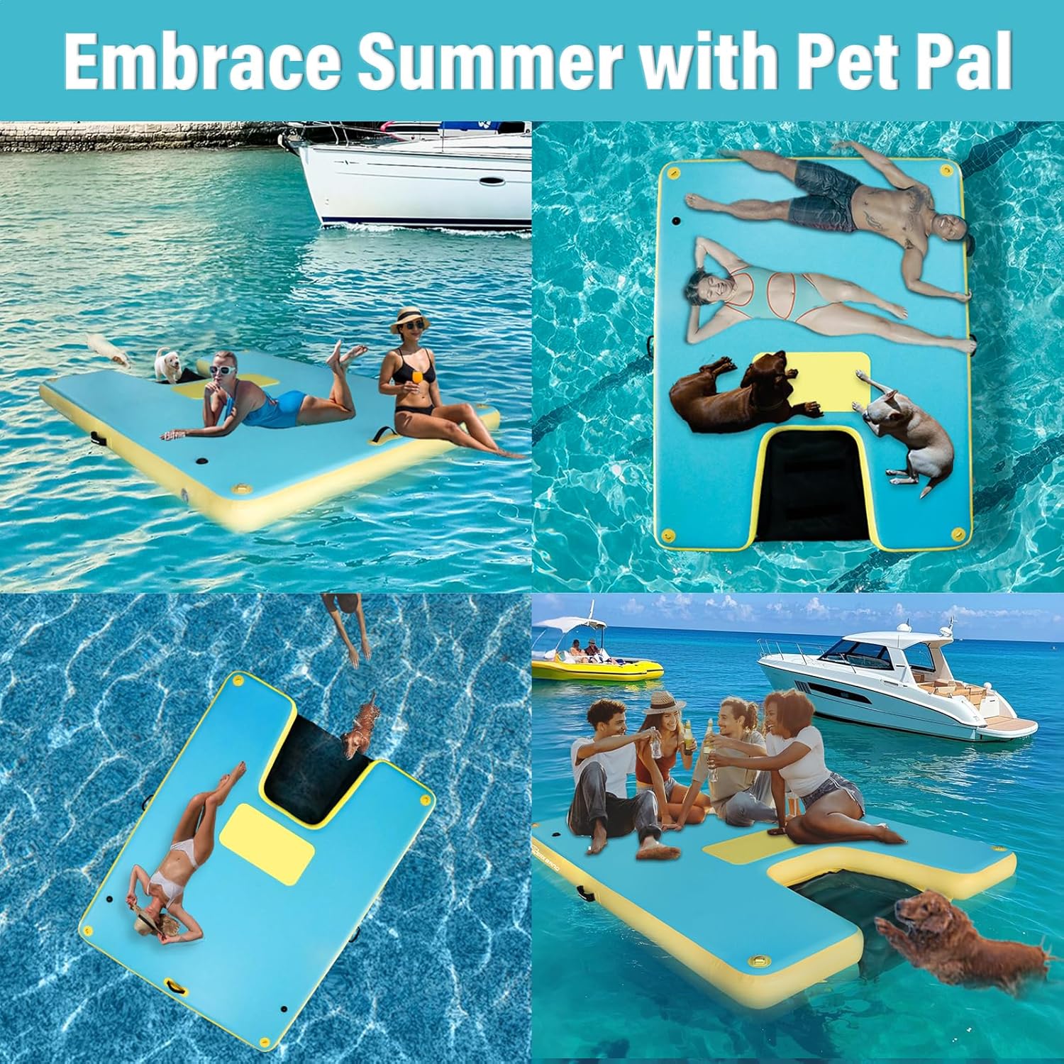 keeps the fun flowing as you run, jump, and play the day away. The inflatable dock can also be used as your own floating island for you and your friends to relax and lounge in the sun. Just pump it up with the included dual-action pump and enjoy your time on the water.