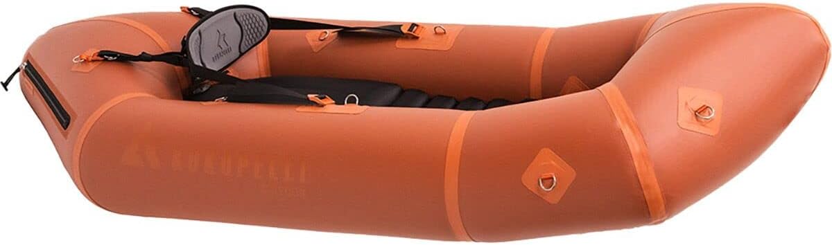 The Recon Inflatable Kayak is about as tough as they come, made with Kokopelli's burliest materials. This hardworking packraft features the same shape as the Nirvana series packrafts, designed to carve with fluid handling through the roughest of waters, only now it has heavy-duty PVC to defend against even the roughest of rocky encounters. Its self-bailing design eliminates the need for a spraydeck, and it's equipped with thigh-strap attachment points if you want to attach the 3-Point Thigh Strap Kit (sold separately) for more responsive handling in rapids.