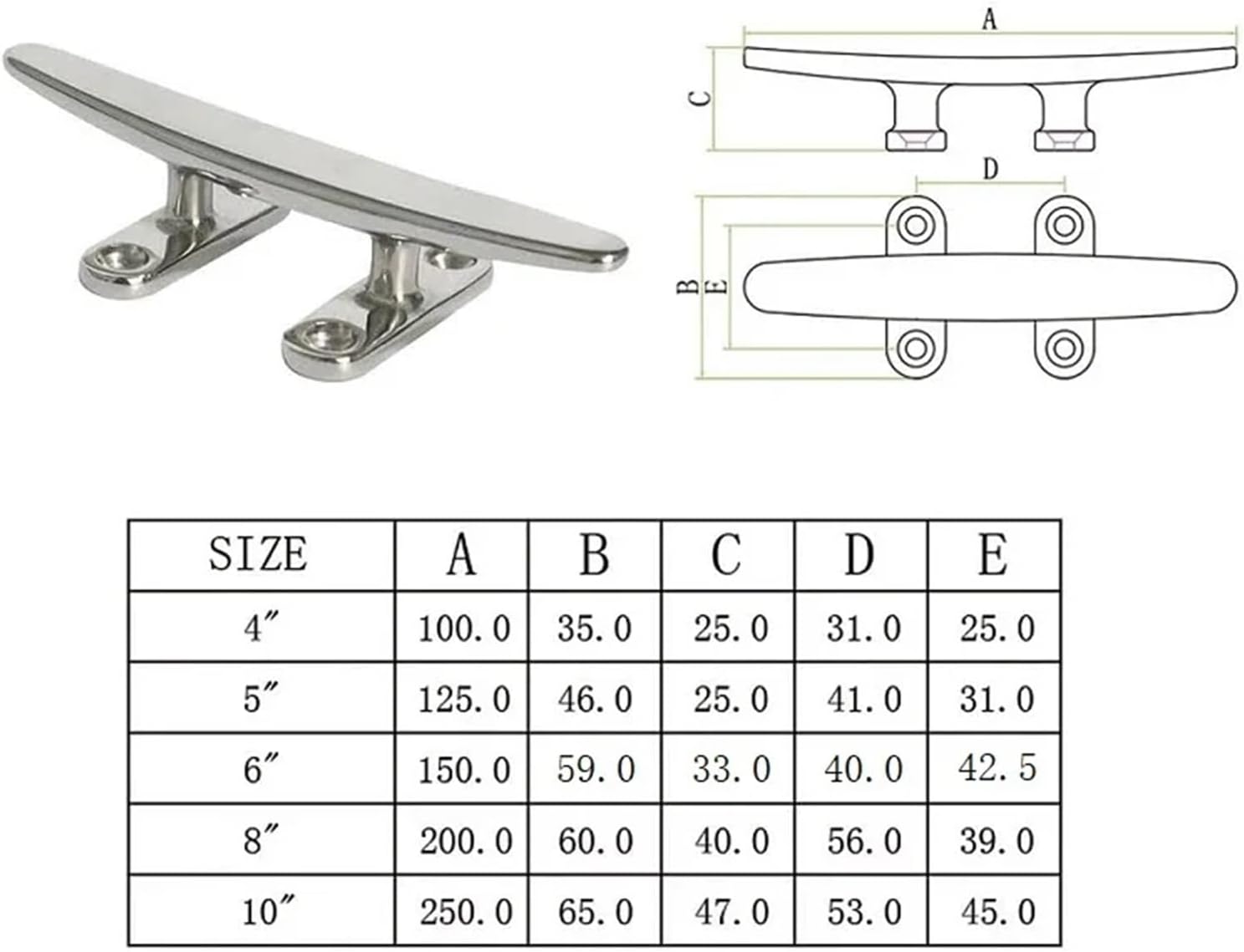 Upgrade your boating experience with our 2PCS 316 Stainless Steel Marine Boat Dock Cleat set, available in 5 inch, 6 inch, and 8 inch sizes. Crafted from 316 stainless steel, these cleats are designed for maximum strength and , making them ideal for marine environments. The mirror polish finish not only adds a sleek aesthetic to your yacht but also ensures longevity and minimal maintenance. Whether you're securing your boat at the dock or tying up during an excursion, these open base cleats provide reliable performance and style. Elevate your boating accessories today!