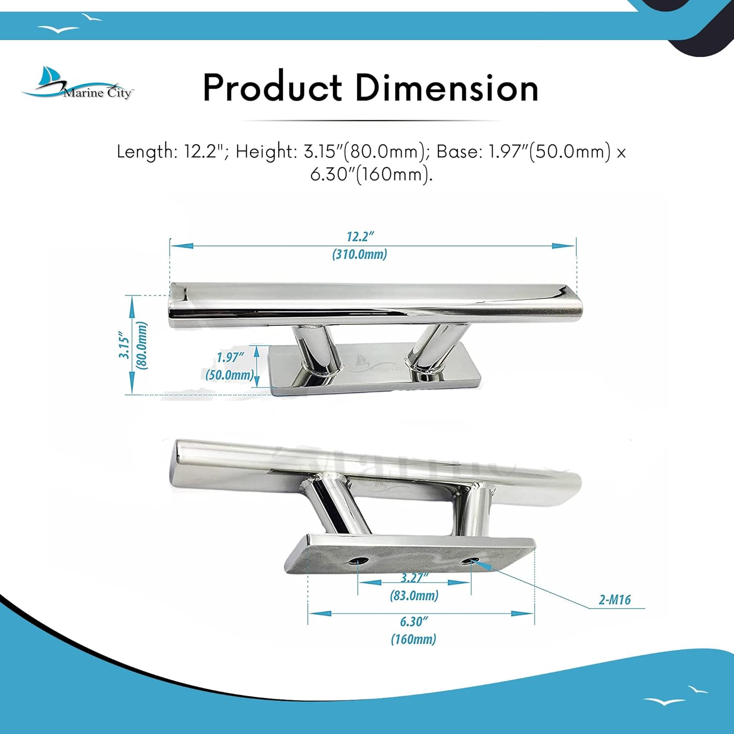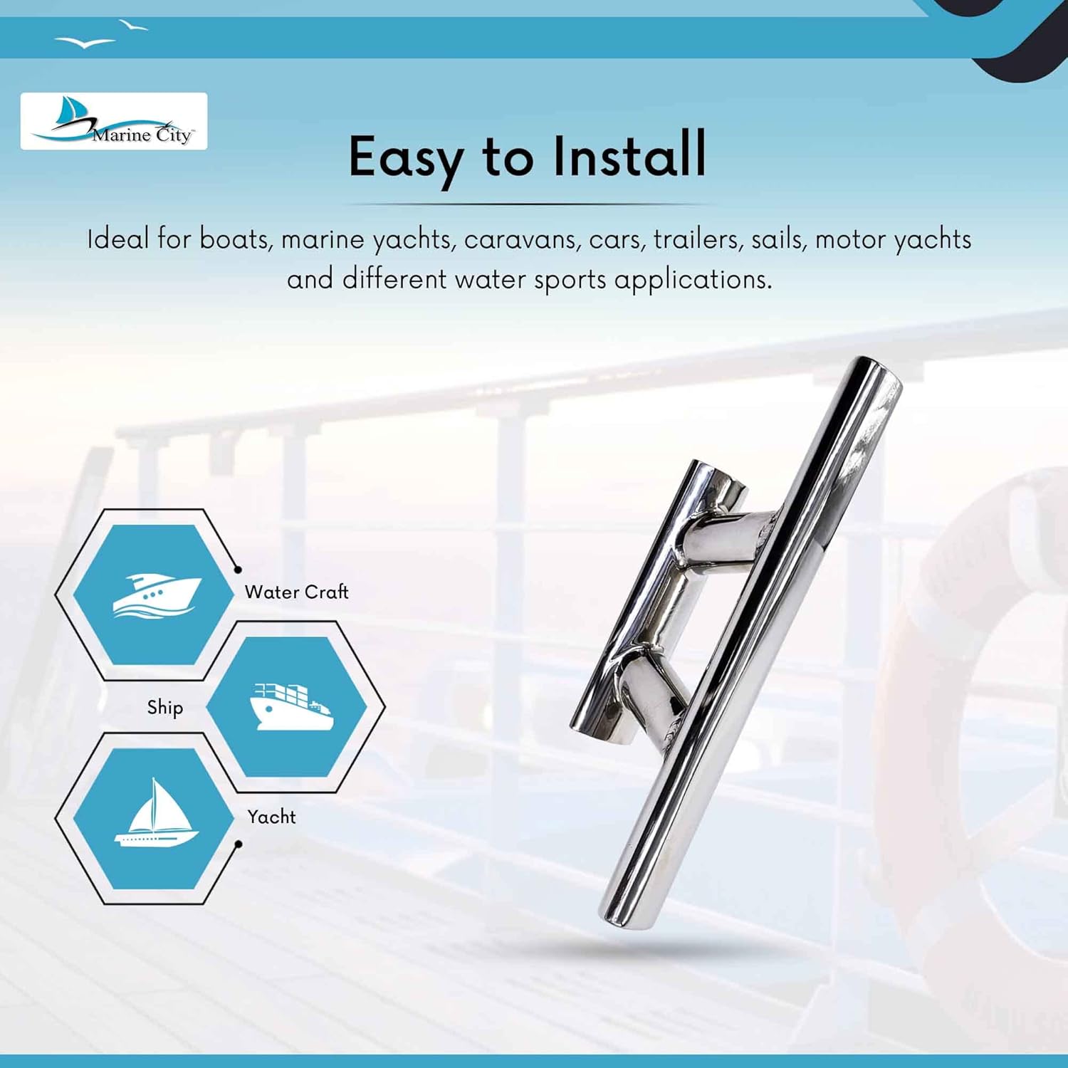 | Included Components | One MARINE CITY 316 Grade Stainless Steel Heavy Duty 12 Inches Stylish Mooring Bollard Cleat with Flat Base |