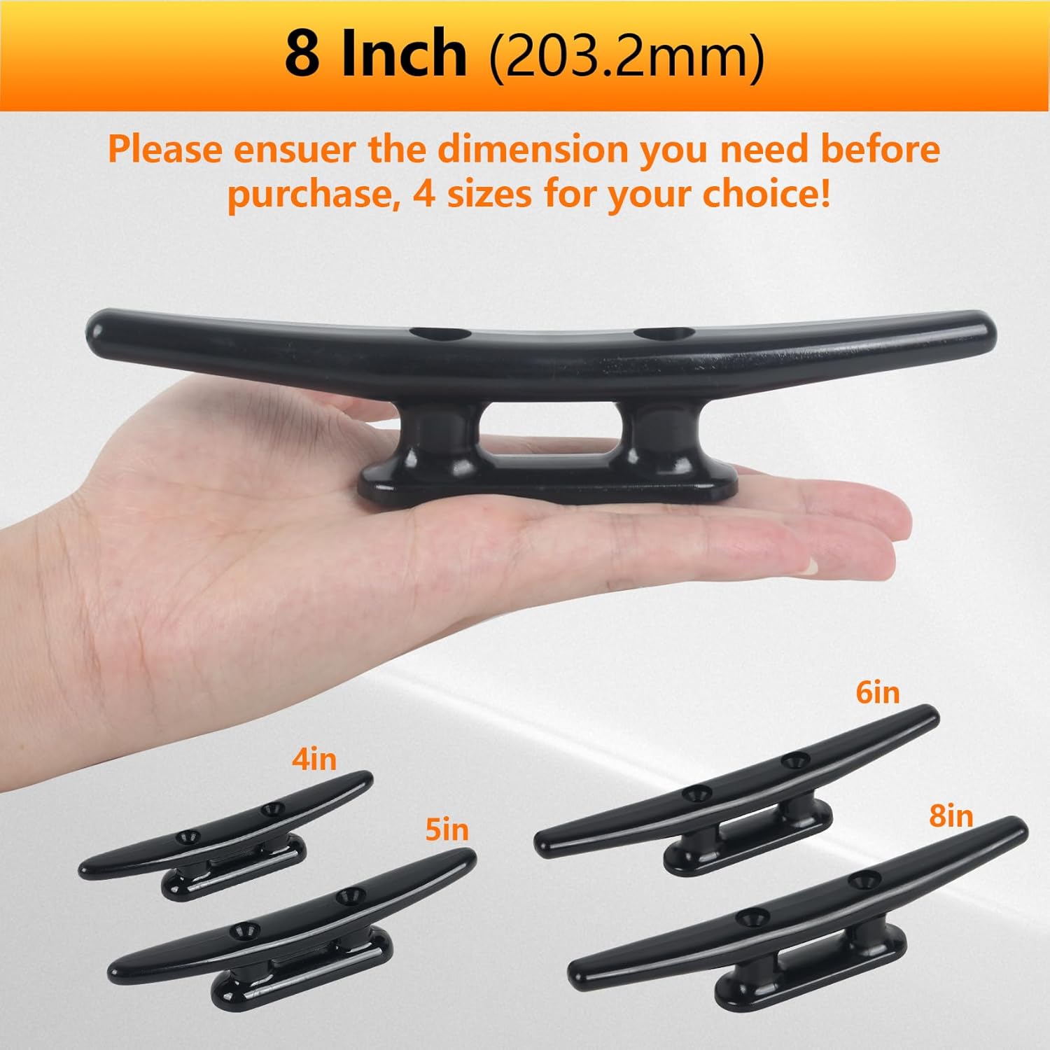 Specification : Product Name: Nylon Boat Cleat Product Condition: 100% Brand New Product Material: Nylon-Strong Uv Resistant Product Color: Black Product Size: Nylon Boat Cleat 4 Inch, 5 Inch, 6 Inch, 8 Inch Product Scope Of Application: Small Boat Cleats are Exellnt for Kayak On Small Places With Small Cleats.Uses Boat Docks, Decks, Piers for Tying Up Small Boats, Kayk, Canoes, Jet Ski'S and Great for Hanginy Boat Fendes, Can Also Used As Towel Hooks, Coat Rack Hanger Board and Great For Dly Artisanal Proyects, Boat Cleats Made of Black Nylon, One-Step Forming,Boat Cleat is Also Sturdy and Not Easy to Break, Sturdy and Lightweight. These Are Very Small Cleats and Due to Various Use Scenarios; Mounting Hardware Included. Package List: √ Black Nylon Cleat √ Stainless Steel Bolts