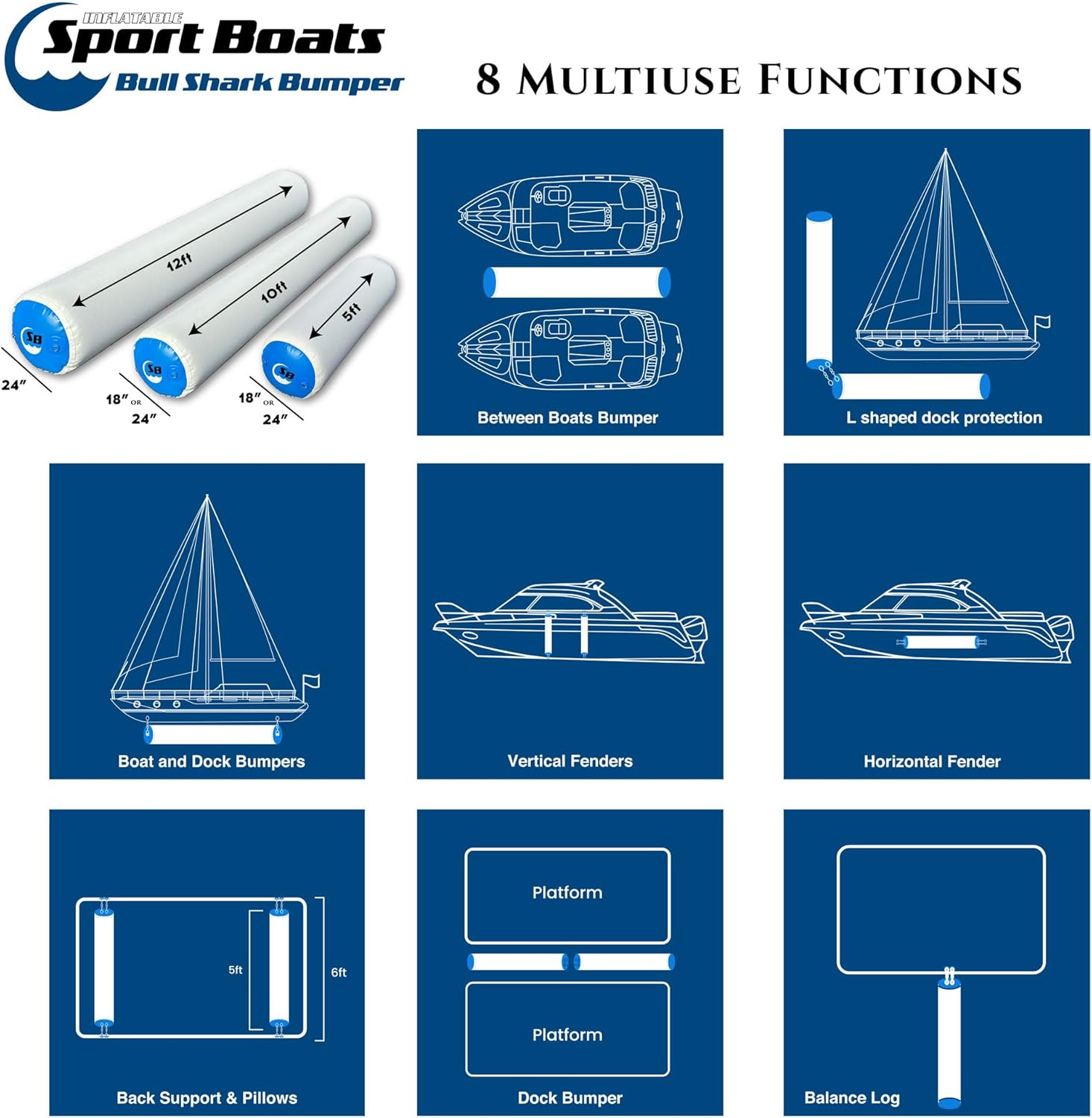 The Bull Shark Bumper Fenders are intended to fend for the edges of your boat, while saving space at the same time. Inflates and deflates in 2 minutes and with flexible storage. Bull Shark Bumpers are designed to handle all size docks and most boat sizes. All fenders are HEAT WELDED and use an extra thick 1.35 mm UV, oil stain, and puncture resistant PVC. Material compares to military grade dinghies and white water river rafts. We guarantee quality construction, longevity, and protection for your boat. We back our products with our 3-year manufacturer limited, “No Seam Blowout” warranty.