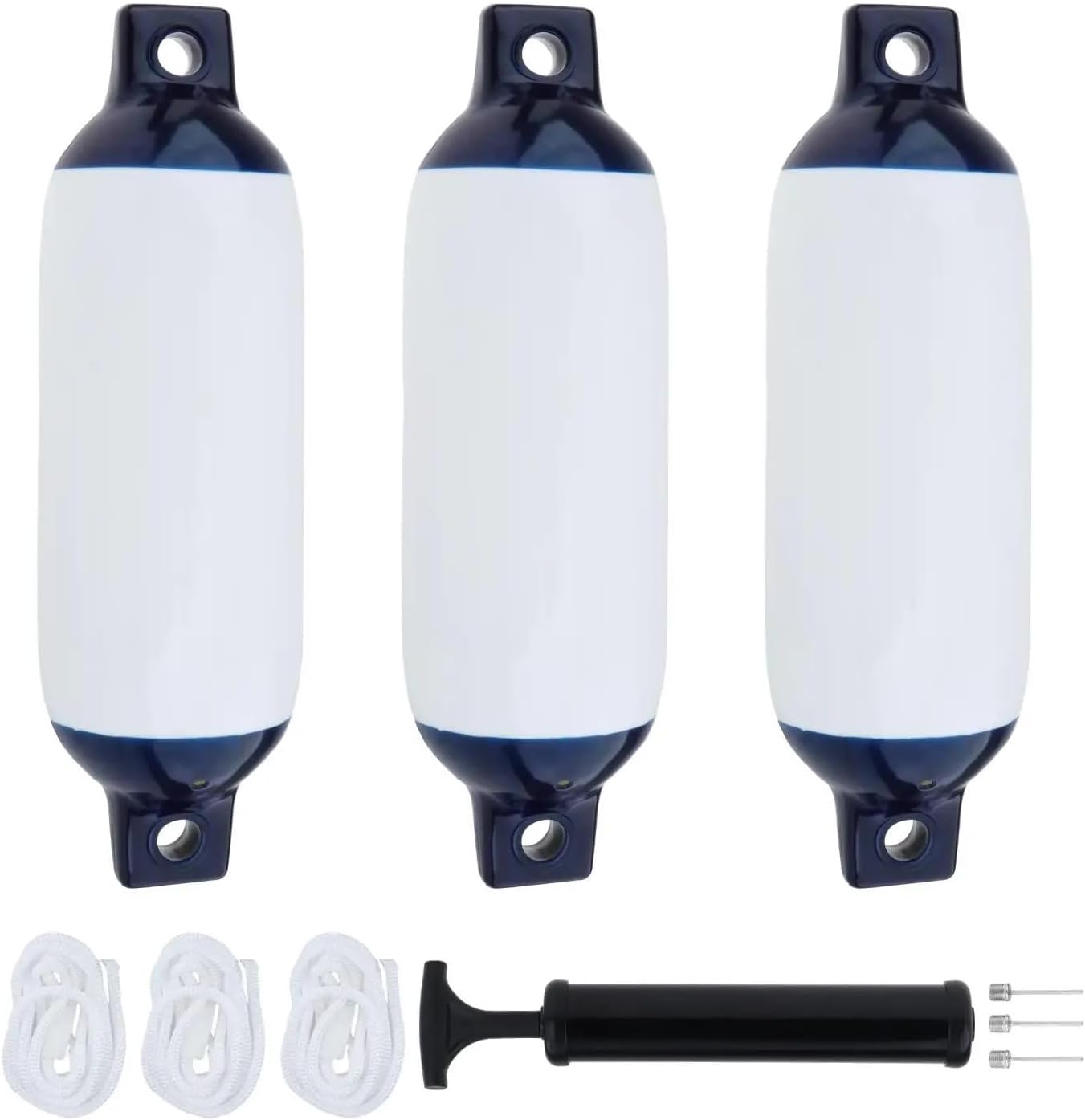 Description:【Practical & 】: The boat fenders bumpers are designed to decrease the friction between the boat and the contact ball/boat bumper, keep the contact ball clean and make the fenders .【Quality Material】: Marine boat fenders made of high quality PVC material, protects the boat fenders cover, and easily withstands the wear and tear of water, and sunlight.【Reinforced Eye Holes】: Boat bumpers fenders with eyelets on both ends. It could be instantly hung with lines either horizontally or vertically.【Easily Storage】: Boat bumpers can optionally deflate or inflate to store all of the parts in the bag, and fit perfectly under seats or inside storage compartments.【Wide Application】: This boat fenders is an ideal for docks, yachts, sailing boats, rowing boats, ski boats, fishing boats, canoes, pontoons, ect.Specification:Material: PVCProduct Size: 11cmx40cm/4.33inchx15.75inch(HxL), Rope Length 1.5m/59.06inchPackage Includes:2 Set Boat fenders: 2 Boat fenders, 2 Ropes, 2 Inflation Nozzles,1 Inflator3 Set Boat fenders: 3 Boat fenders, 3 Ropes, 3 Inflation Nozzles,1 Inflator4 Set Boat fenders: 4 Boat fenders, 4 Ropes, 4 Inflation Nozzles,1 Inflator6 Set Boat fenders: 6 Boat fenders, 6 Ropes, 6 Inflation Nozzles,1 InflatorNote:Please allow slightly errors due to manual measurement and different monitors.